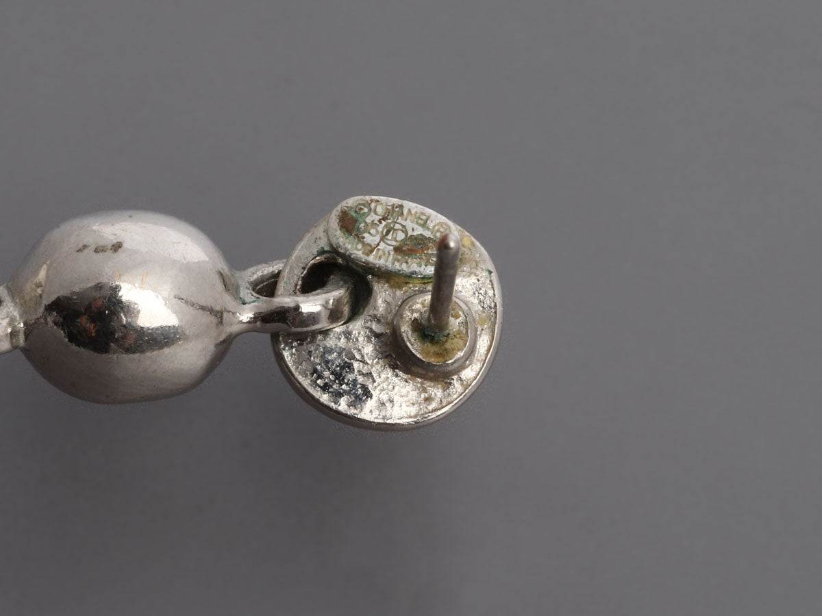 With a 5-inch drop, Chanel’s Long Beads and Pearls Logo Pierced Drop Earrings are shoulder ticklers that have lots of movement! Made of silver beads, faux pearls, and white pearls on a silver-tone chain, they end in a double-sided CC logo and attach to the lobe with a post and bullet clutch back. In good condition, they have scratches on the metal and some tarnish on the posts. Remember to toss your head often with these danglers on, that’ll set them in motion and draw all eyes to your face!