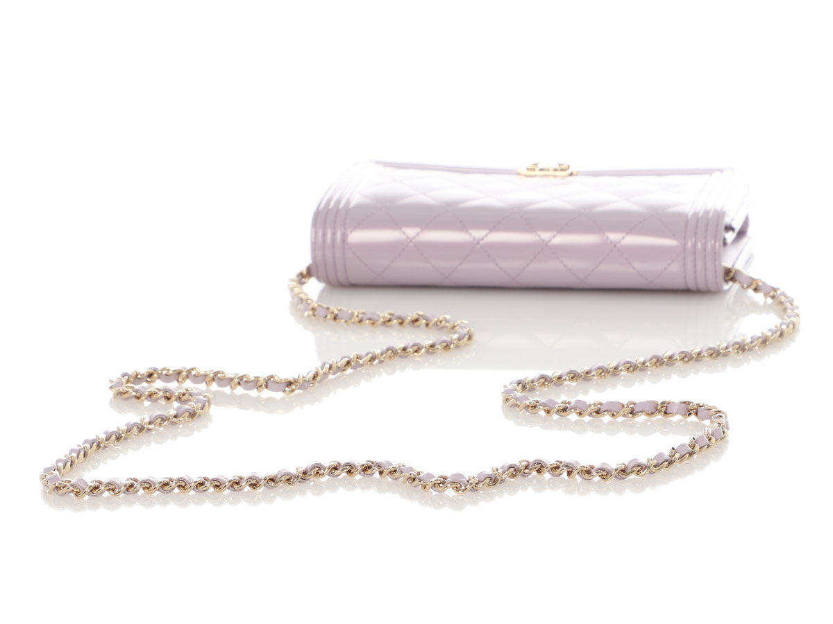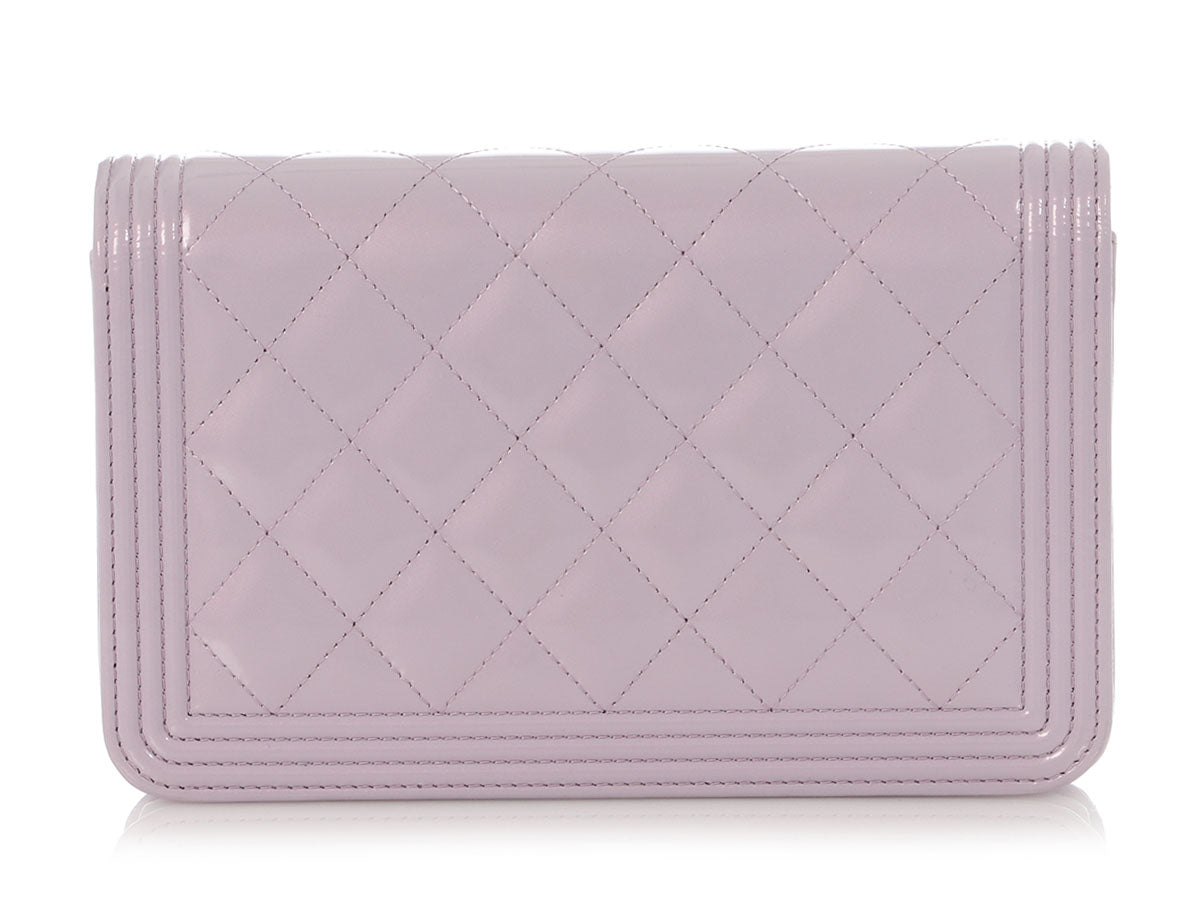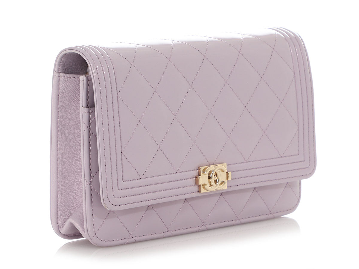 Chanel Lilac Metallic Patent Boy Wallet On Chain
