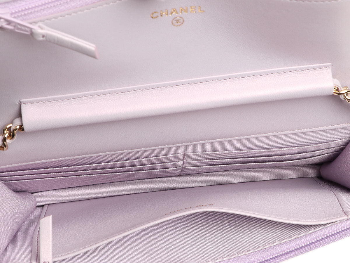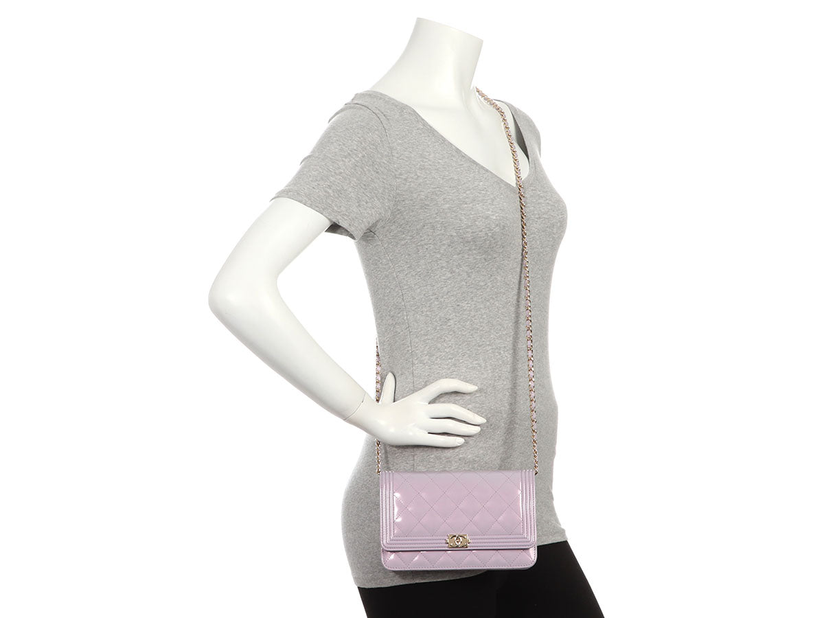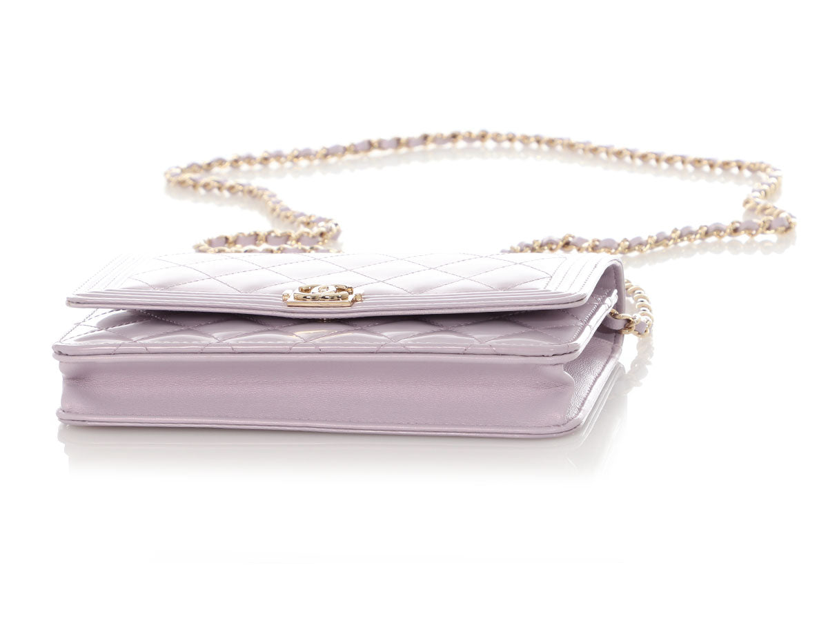 Chanel Lilac Metallic Patent Boy Wallet On Chain