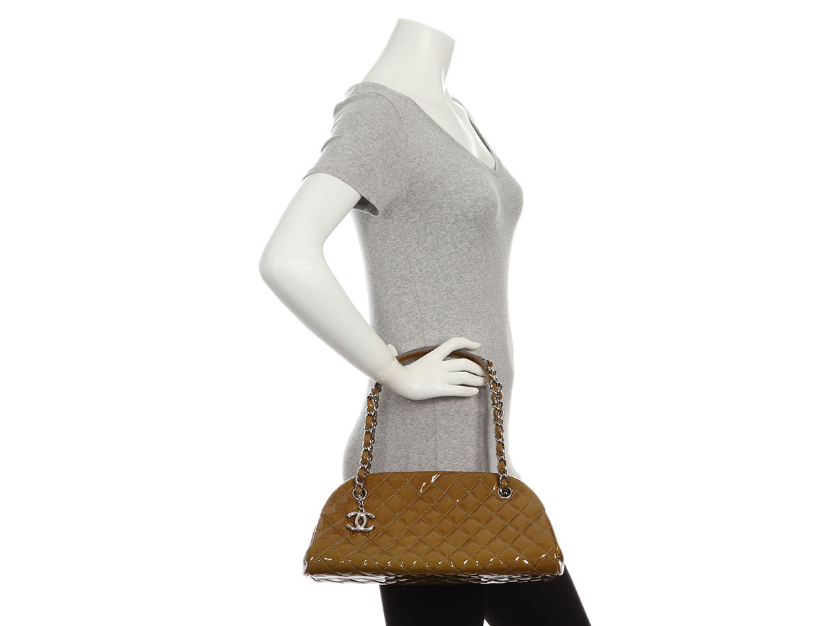 Chanel Medium Olive Green Quilted Patent Just Mademoiselle Bowler