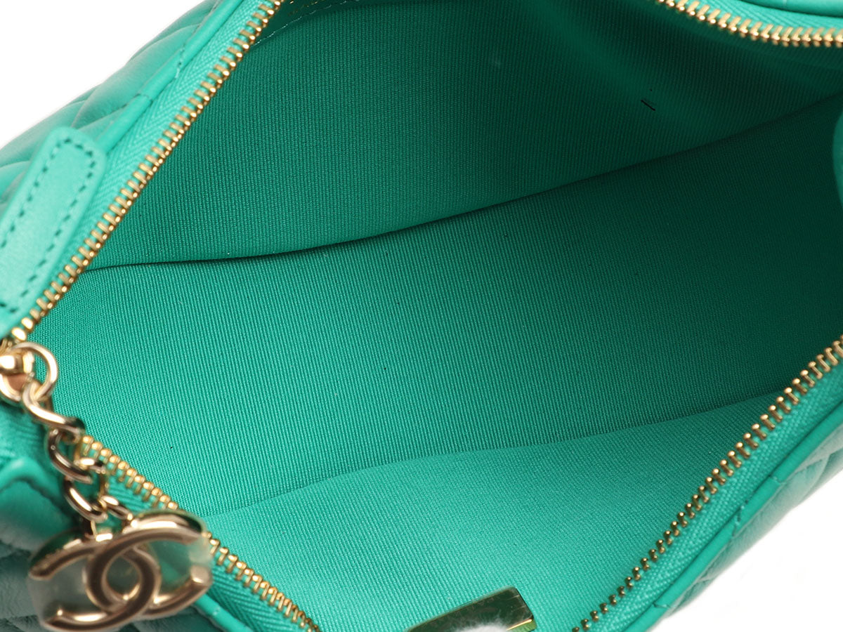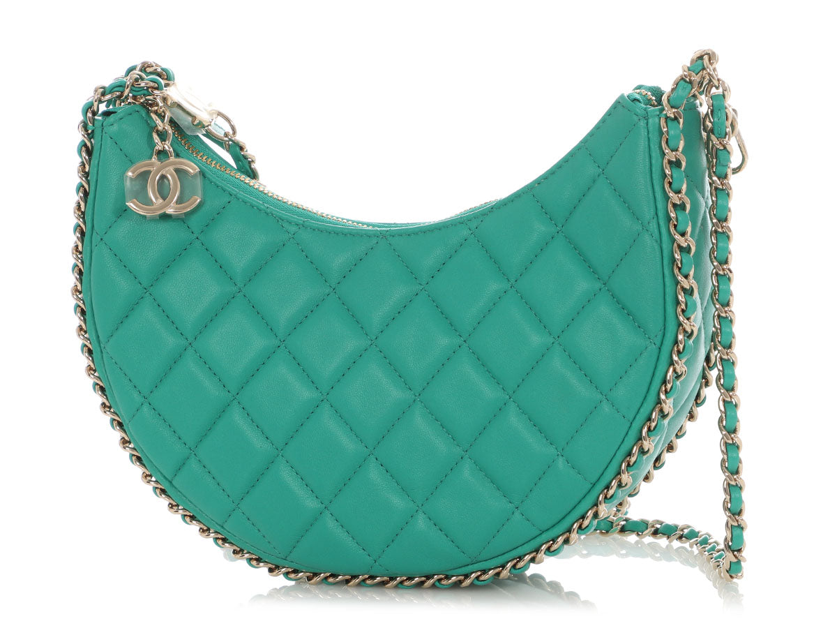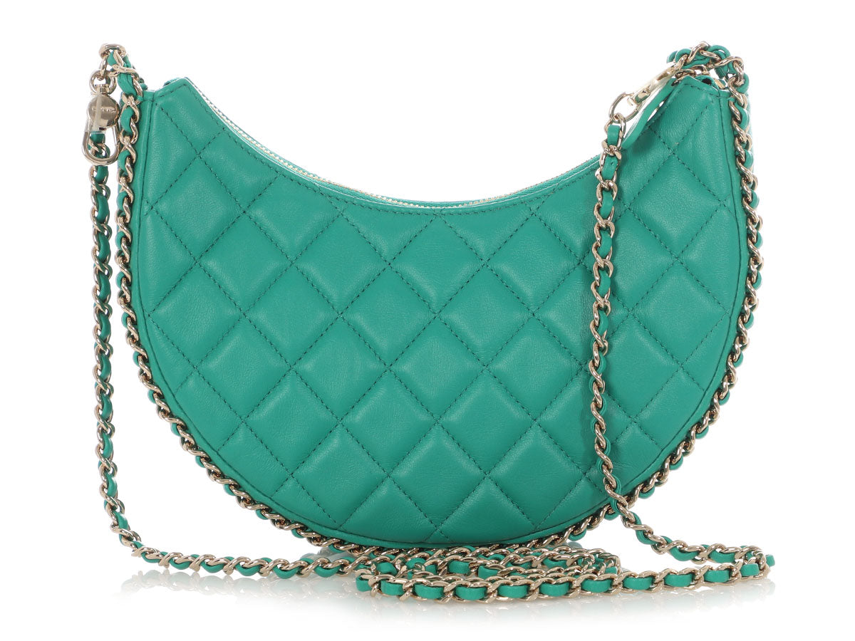 Chanel Mini Green Quilted Lambskin Chain Around Hobo