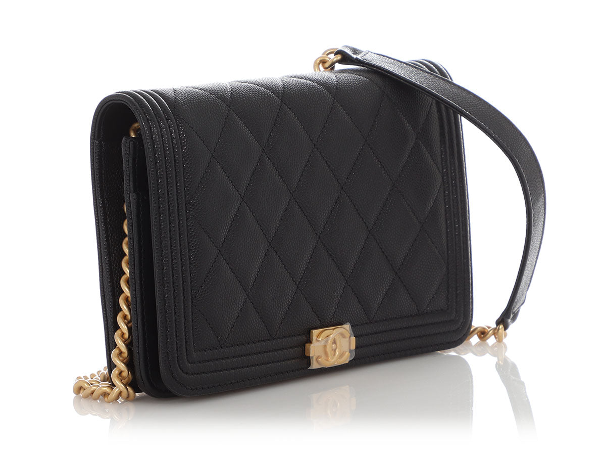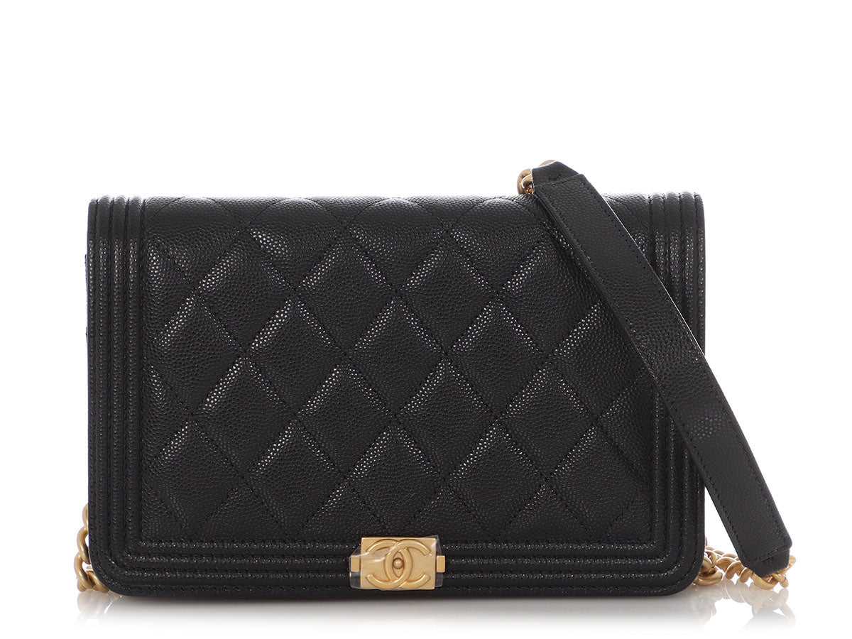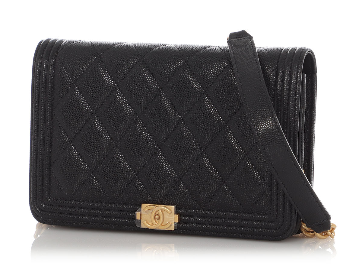 Chanel Black Quilted Caviar Boy Wallet on Chain WOC
