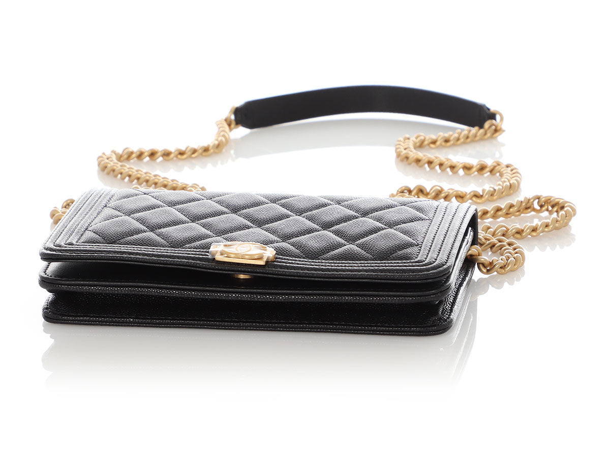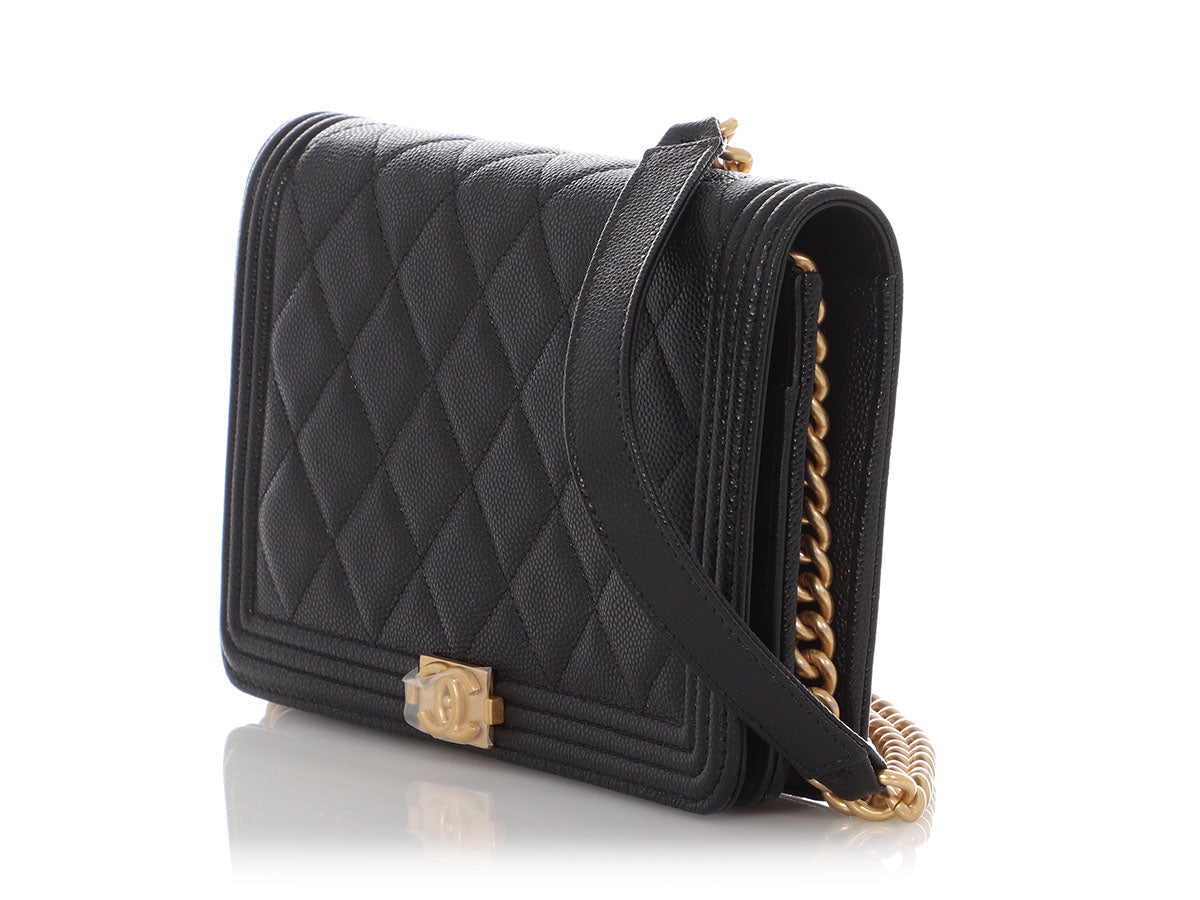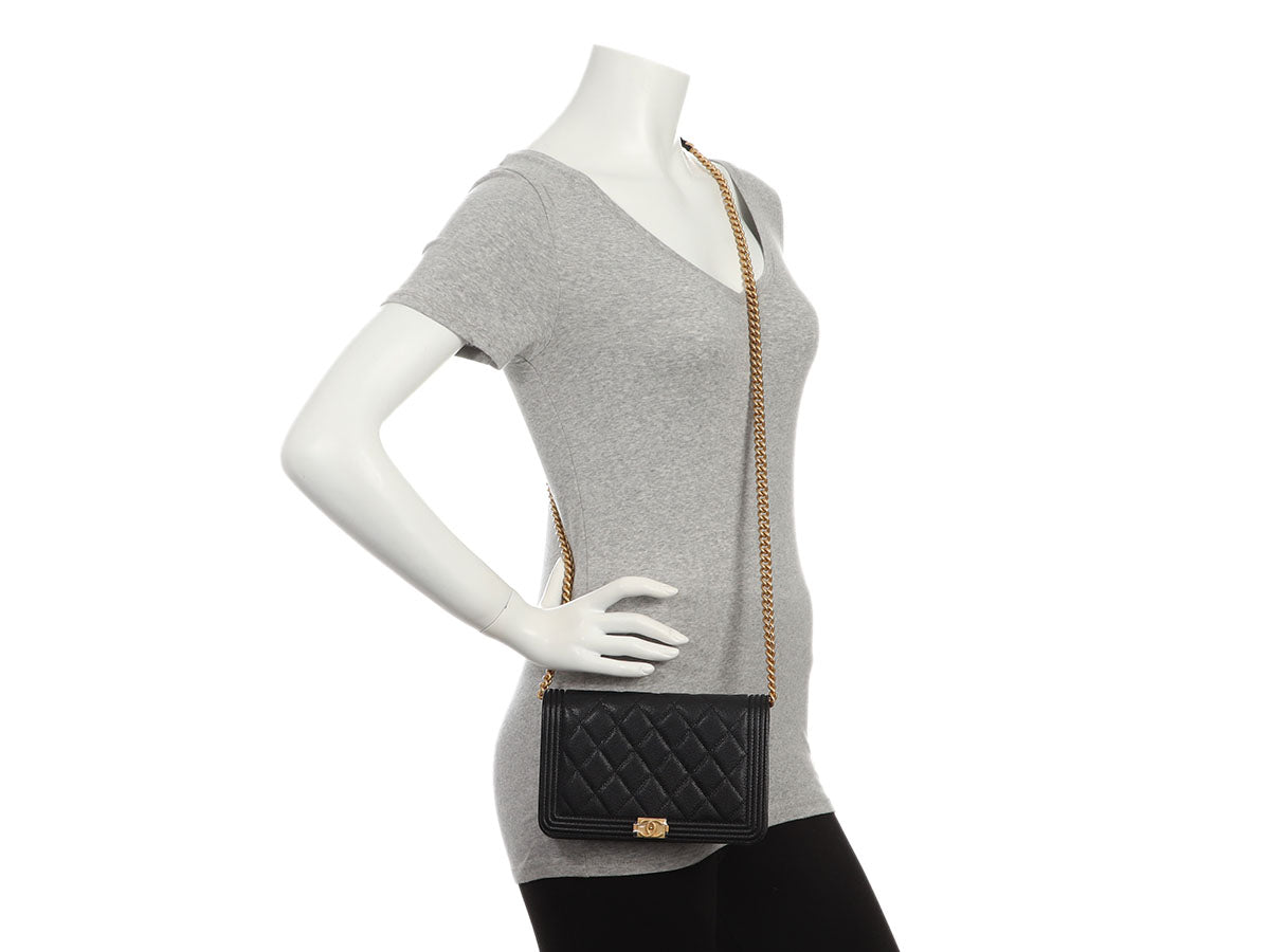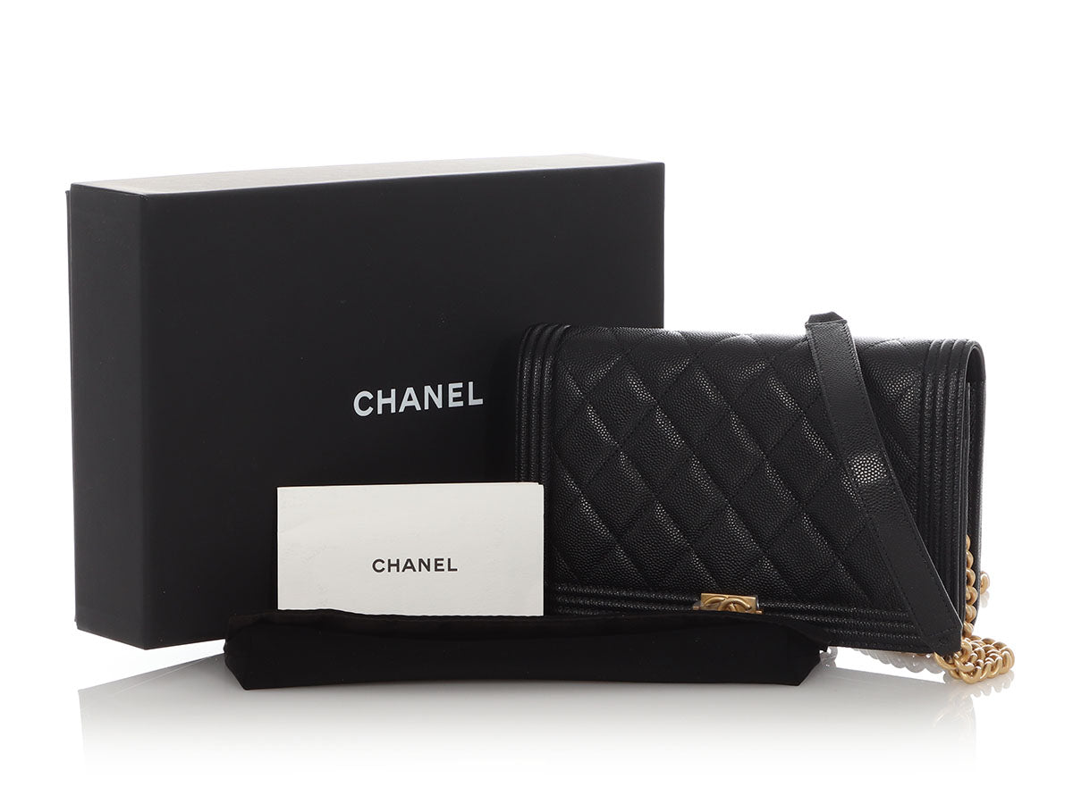 Chanel Black Quilted Caviar Boy Wallet on Chain WOC