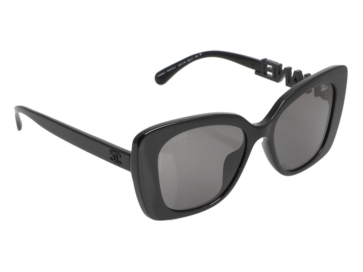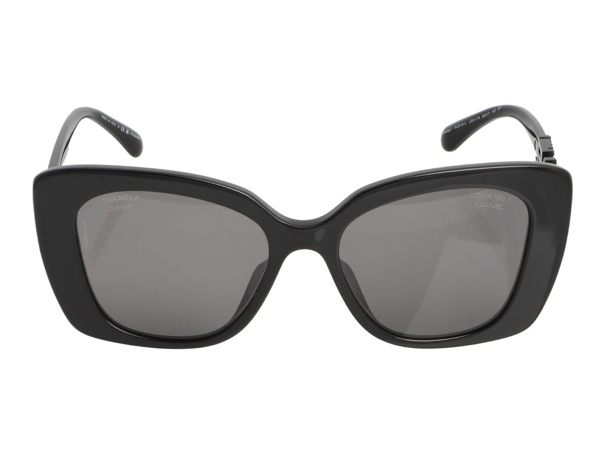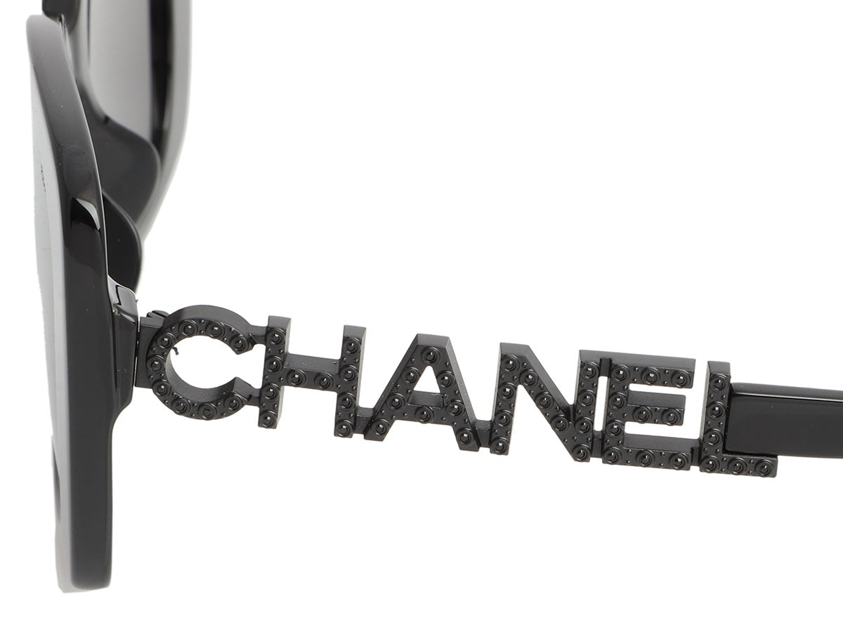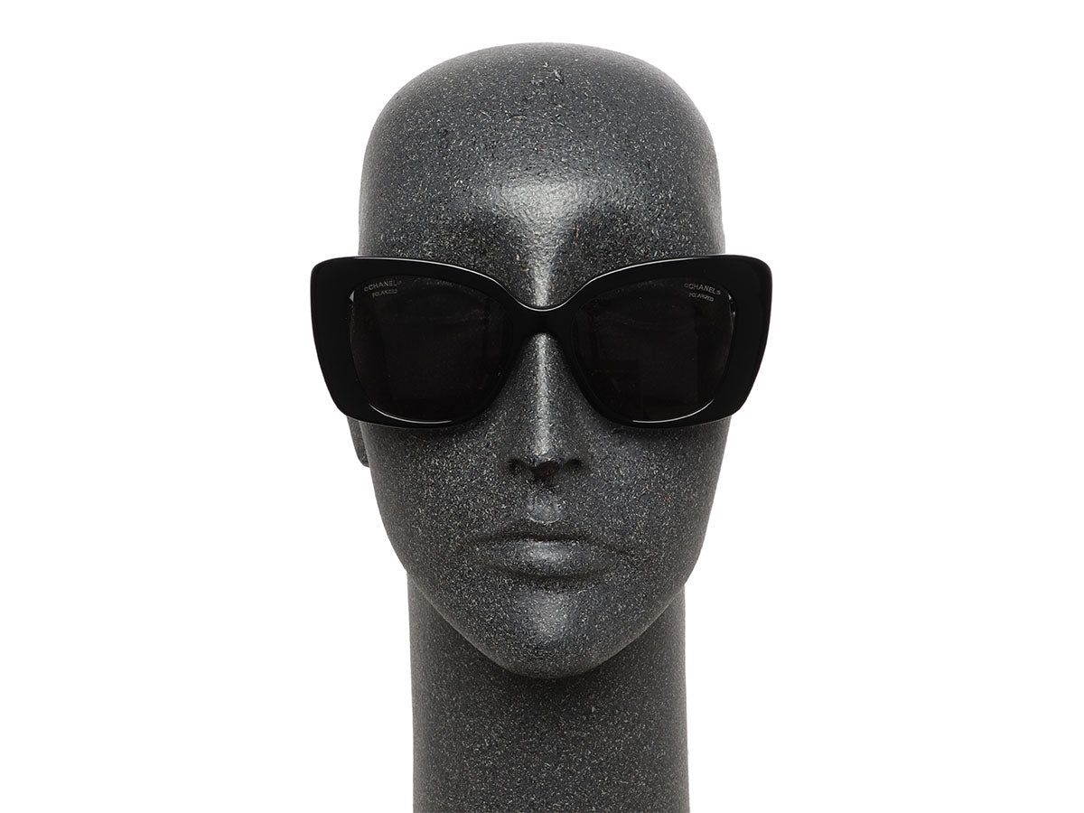 Chanel’s Black Cat Eye Sunglasses are a more modern take on a classic look! Set in squared-off black plastic frames, the dark gray lenses have a slight cat’s eye shape. New and never worn with a box, case, and info booklet, the arms say "Chanel" and are accented with tiny black crystals!