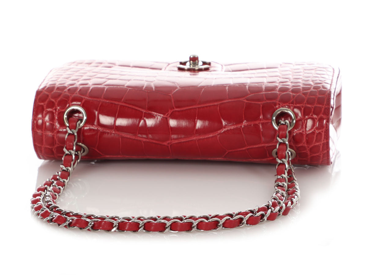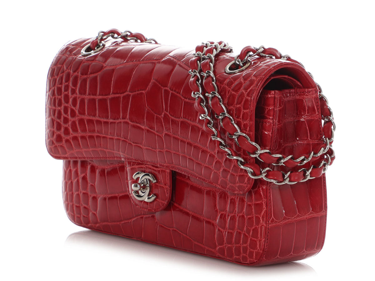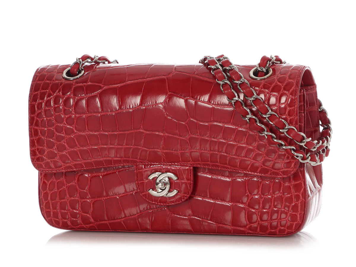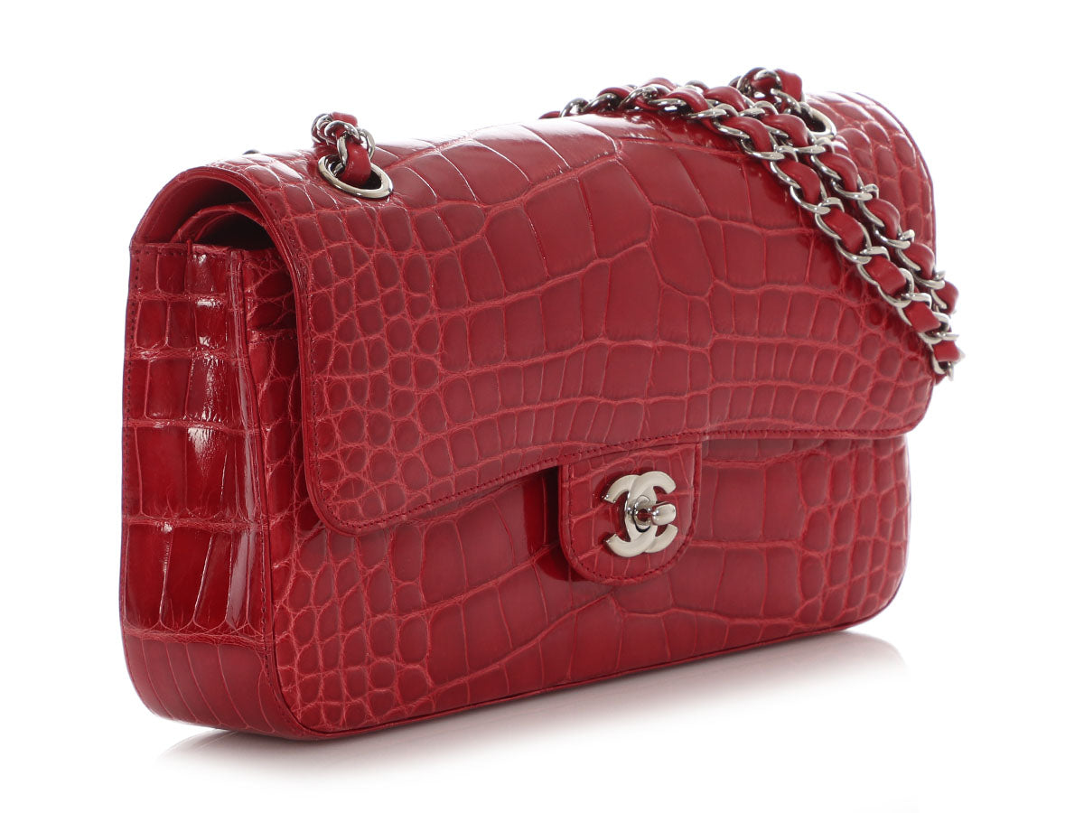 Chanel Medium/Large Red Shiny Alligator Classic Double Flap