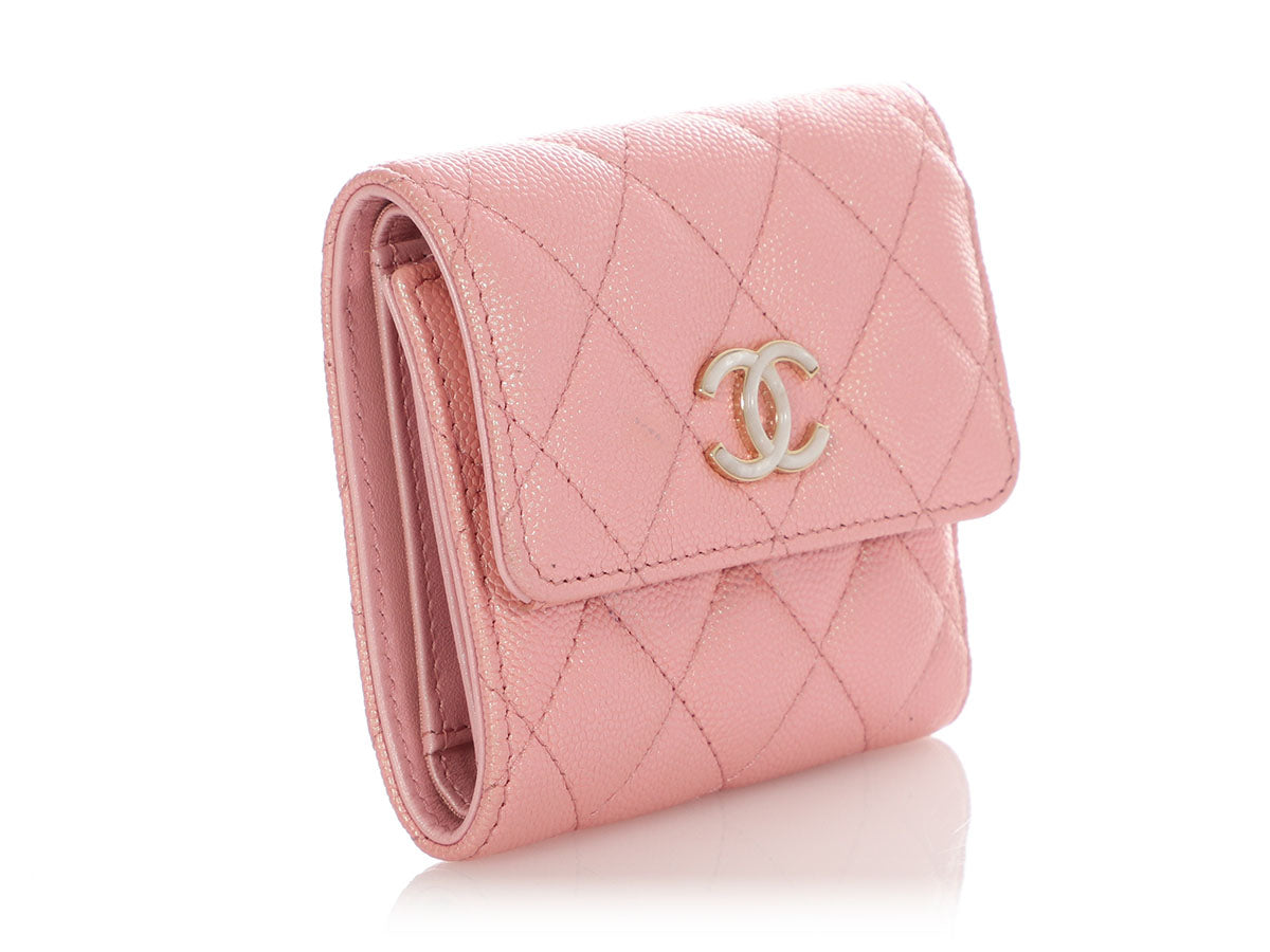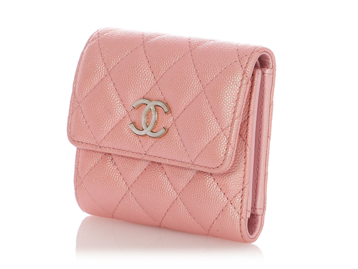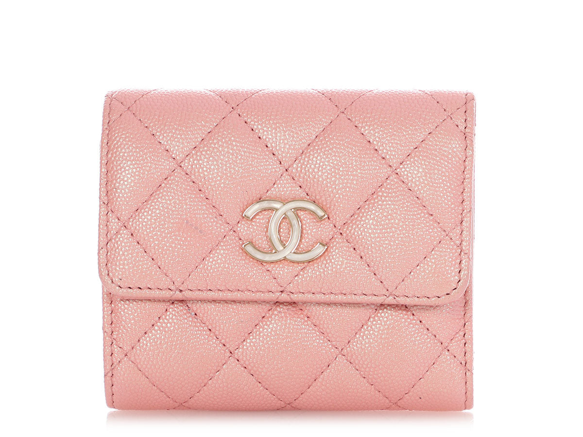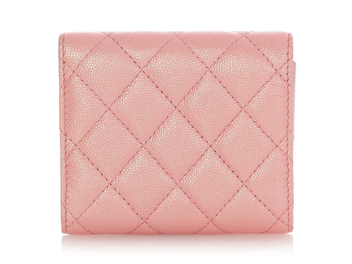 Chanel Iridescent Pink Quilted Caviar Compact Wallet
