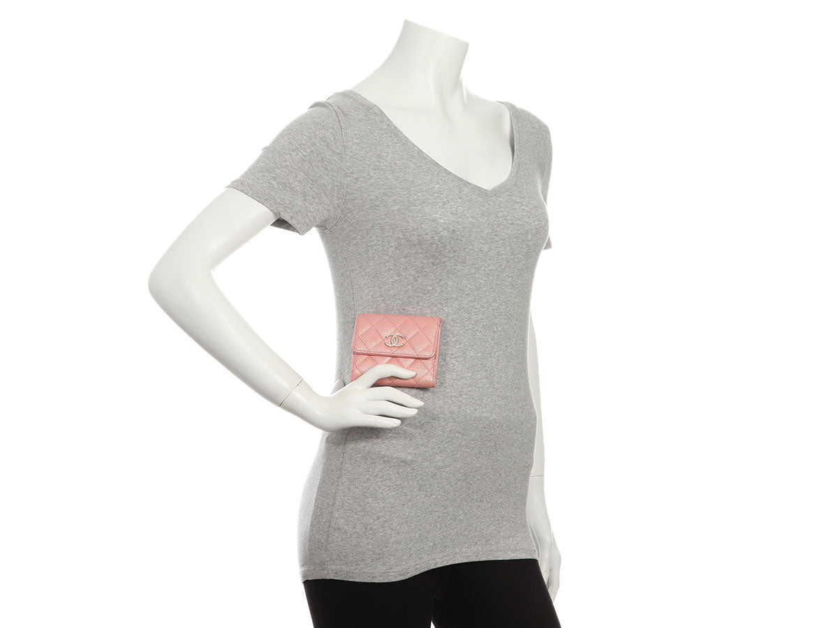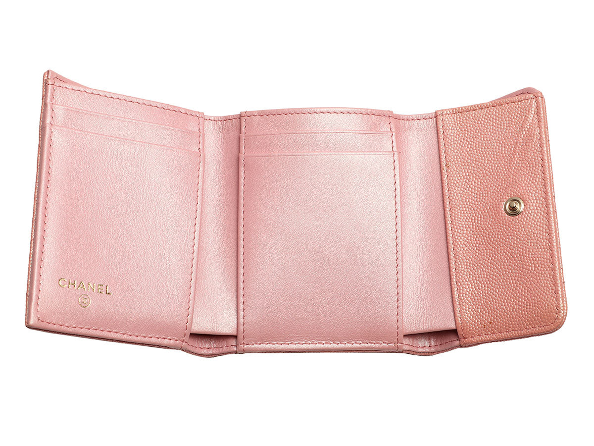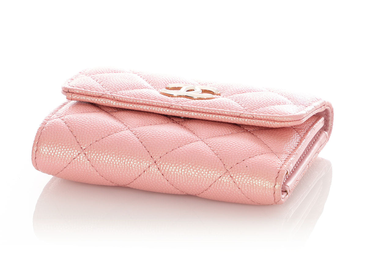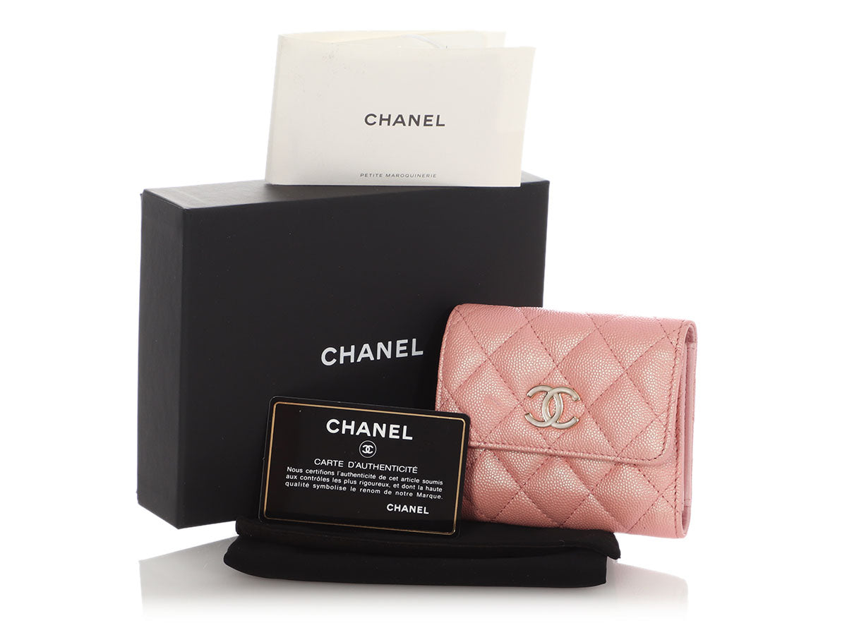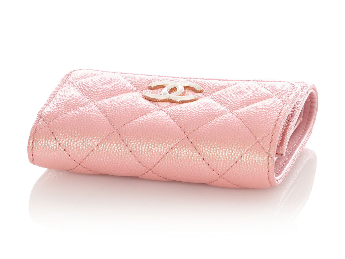 Chanel Iridescent Pink Quilted Caviar Compact Wallet