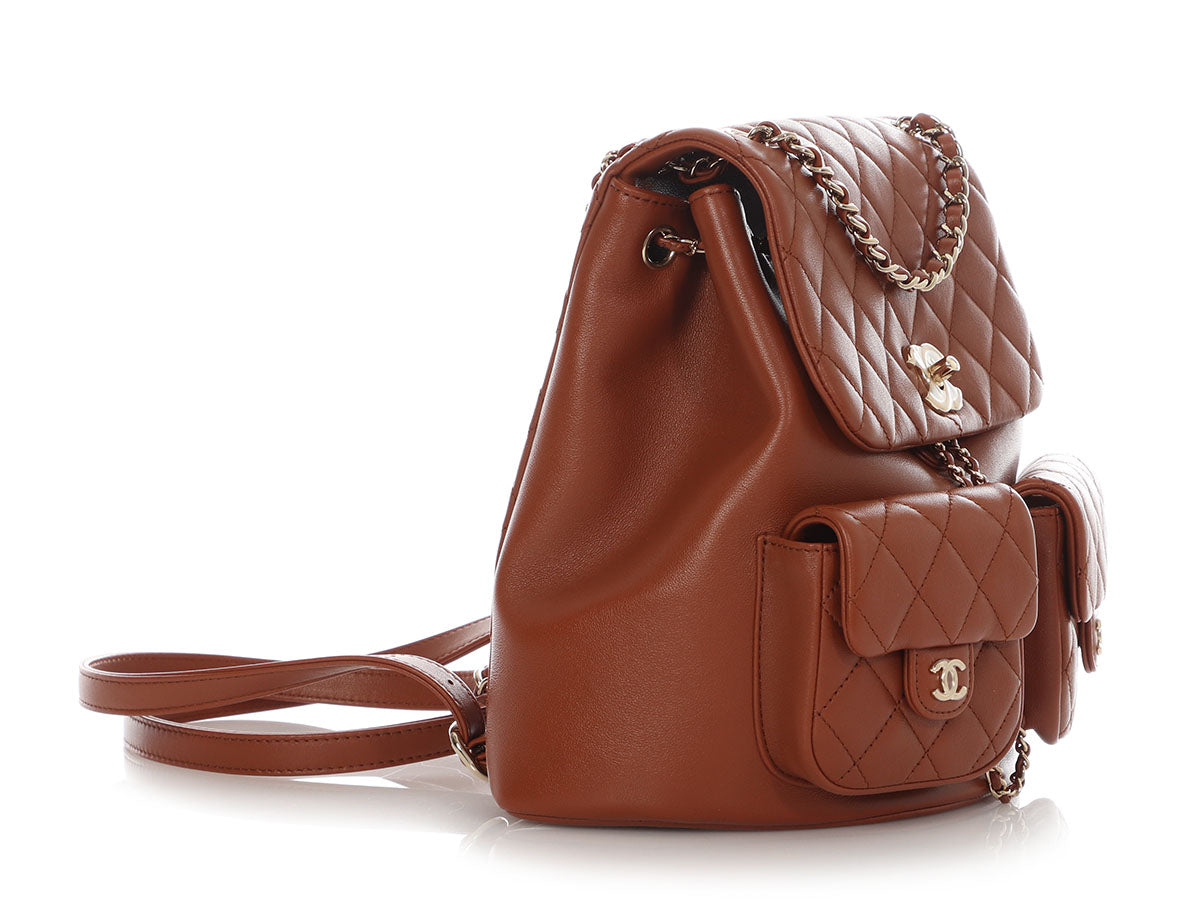 Chanel Medium Brown Quilted Calfskin Duma Pockets Drawstring Backpack