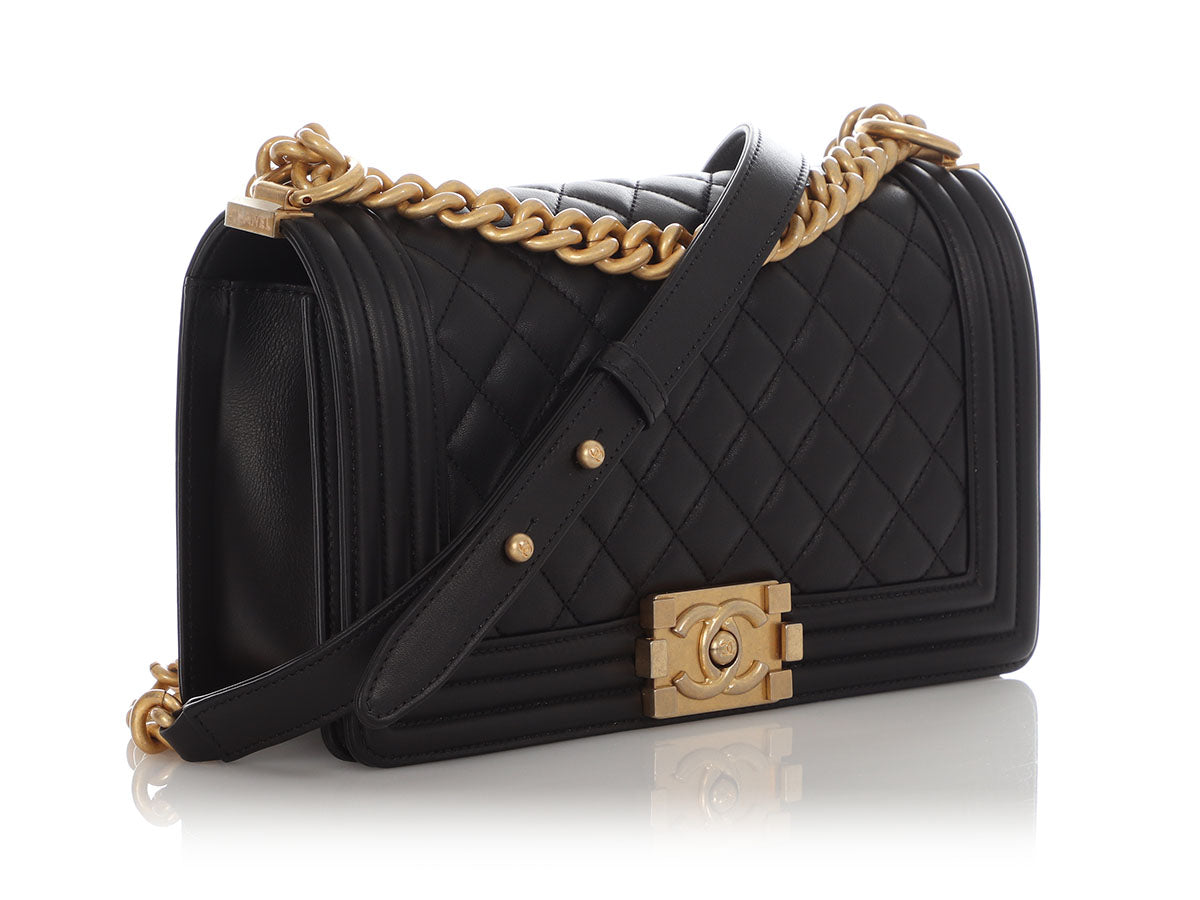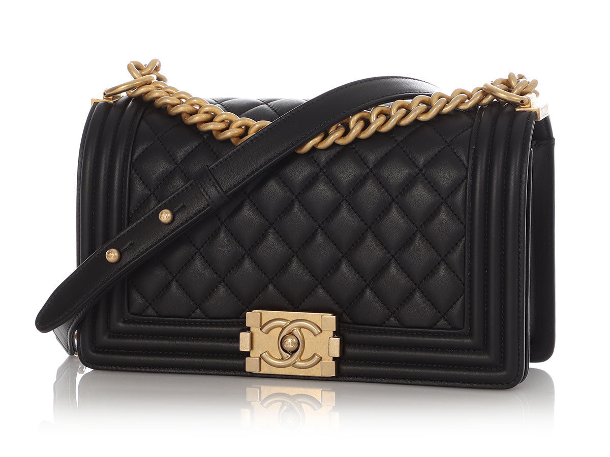 Chanel Old Medium Black Quilted Lambskin Boy Bag