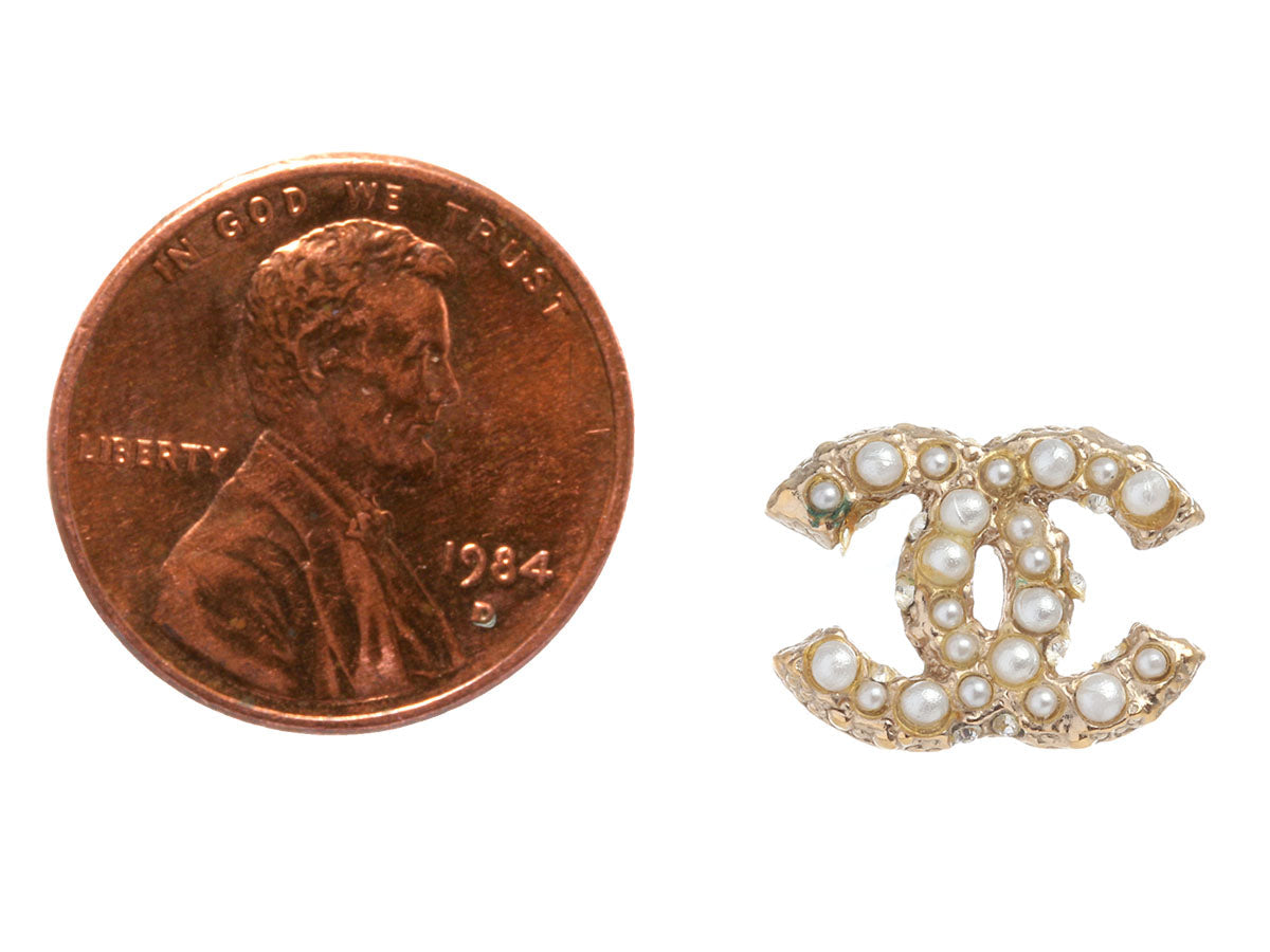Chanel Small Pearl Logo Pierced Earrings