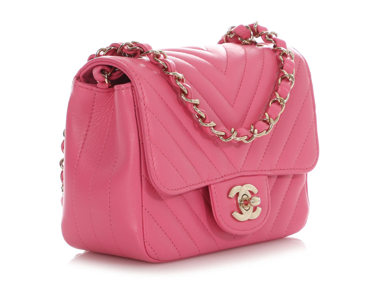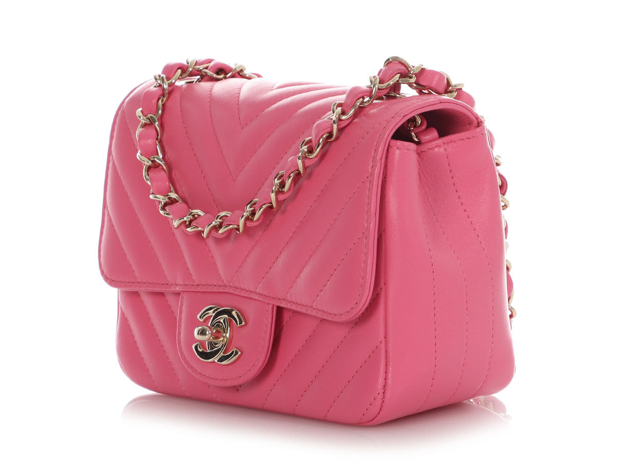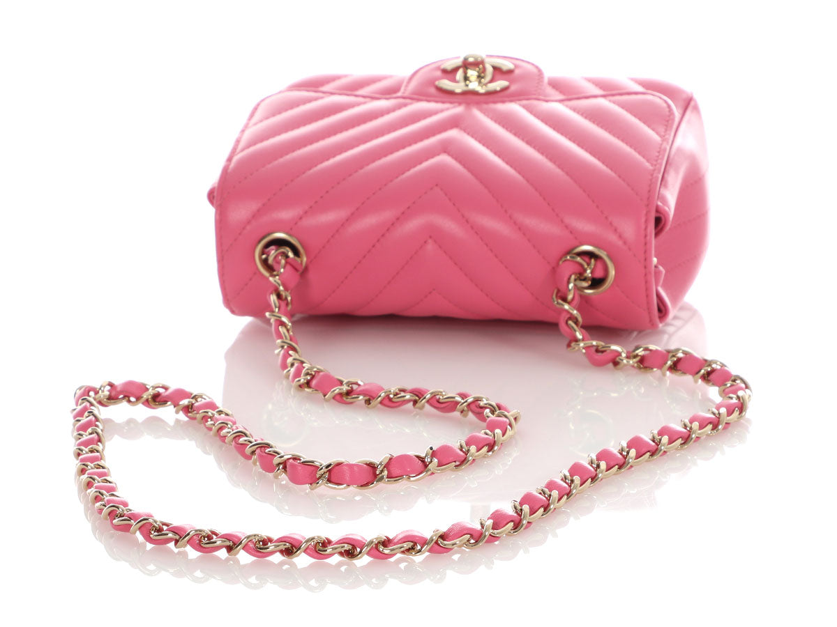 Chanel Mini Pink Chevron-Quilted Lambskin Classic