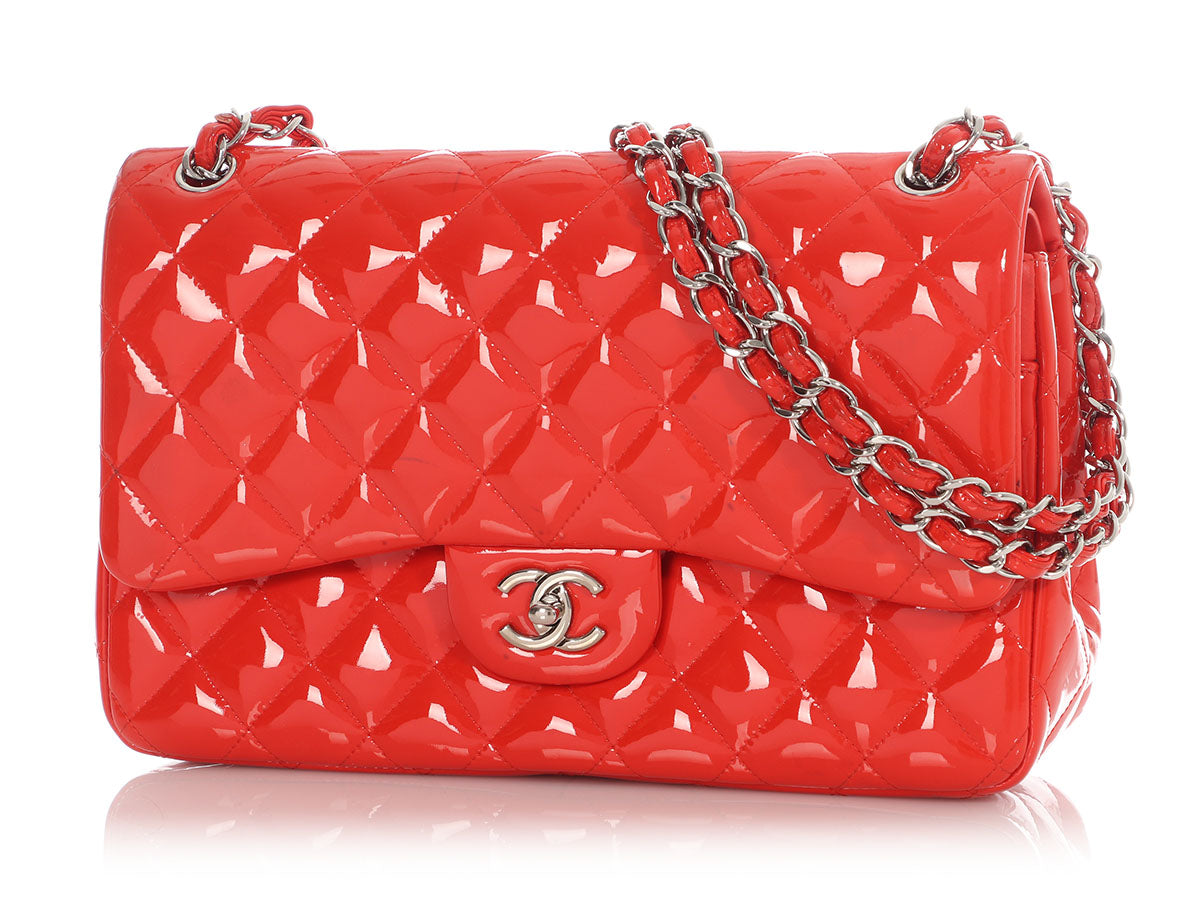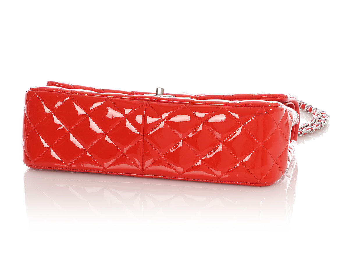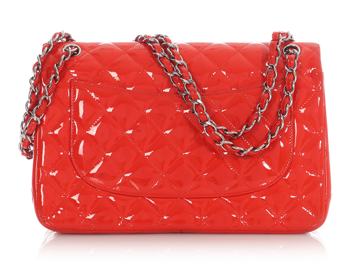 Chanel Jumbo Red Quilted Patent Classic Double Flap