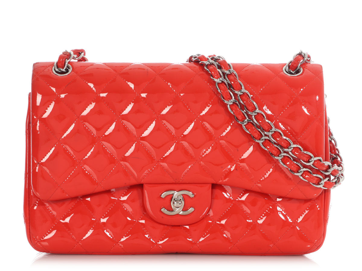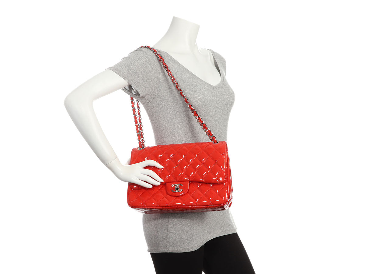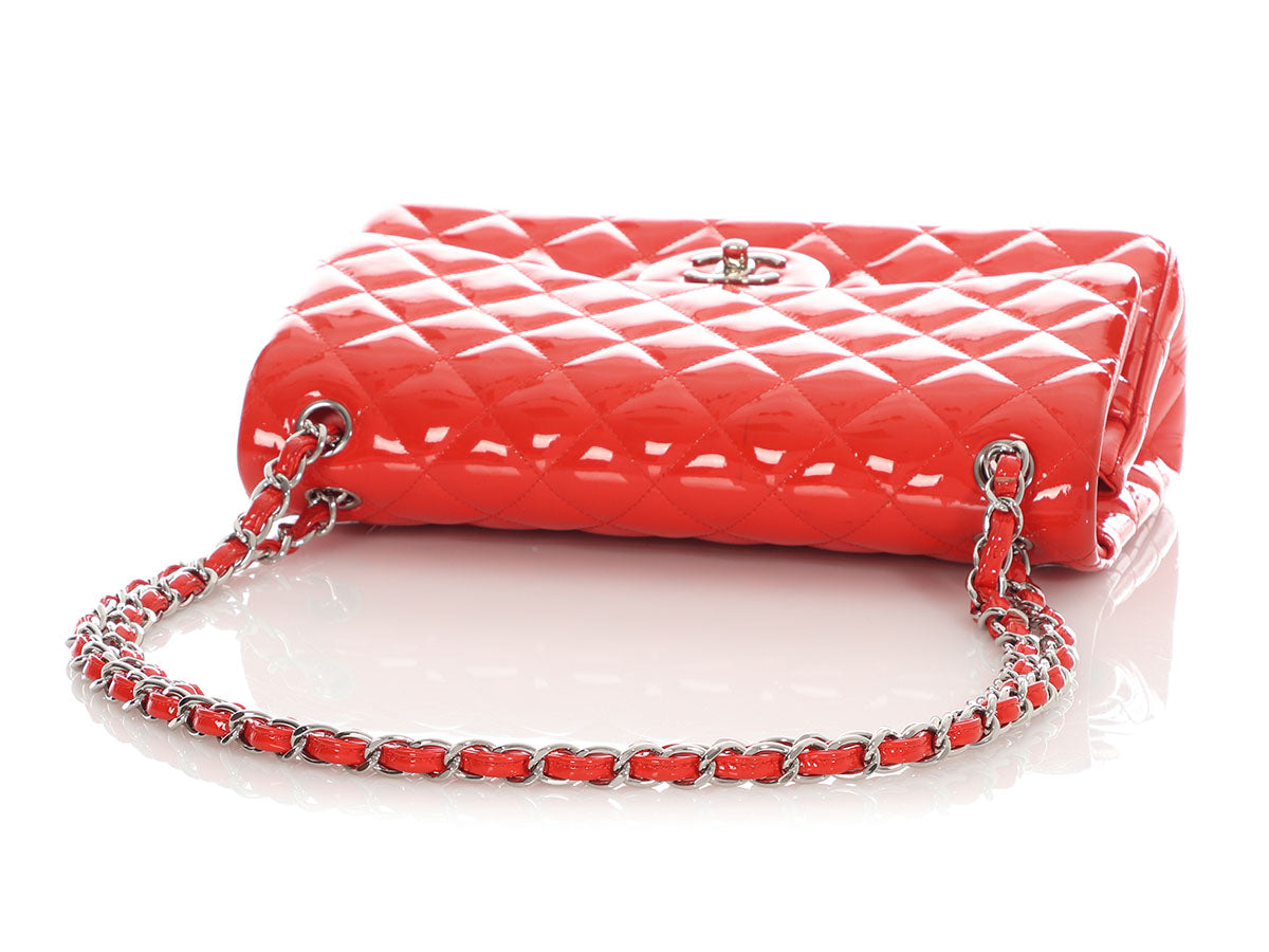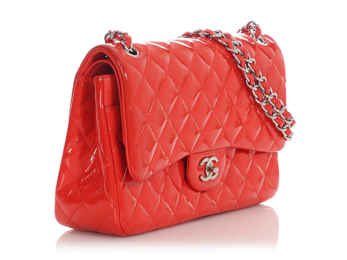 Chanel Jumbo Red Quilted Patent Classic Double Flap