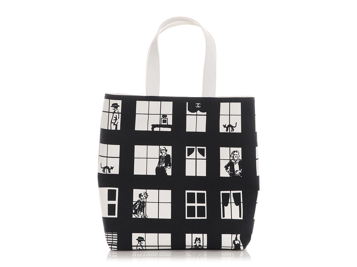 Chanel’s Coco Window Tote presents a series of vignettes of Gabrielle and her brand’s iconic images in a whimsical Black and White Canvas unisex carry! This lightweight bag is paired with gold-tone hardware, black feet, and can stand on its own flat bottom. The white-logo-canvas lining has one slide pocket inside and it has dual white-leather flat handles with a 7-inch drop. New and never worn from 2003-04, it comes with a dustbag and box, and is the chic-est shopping tote I’ve ever seen!