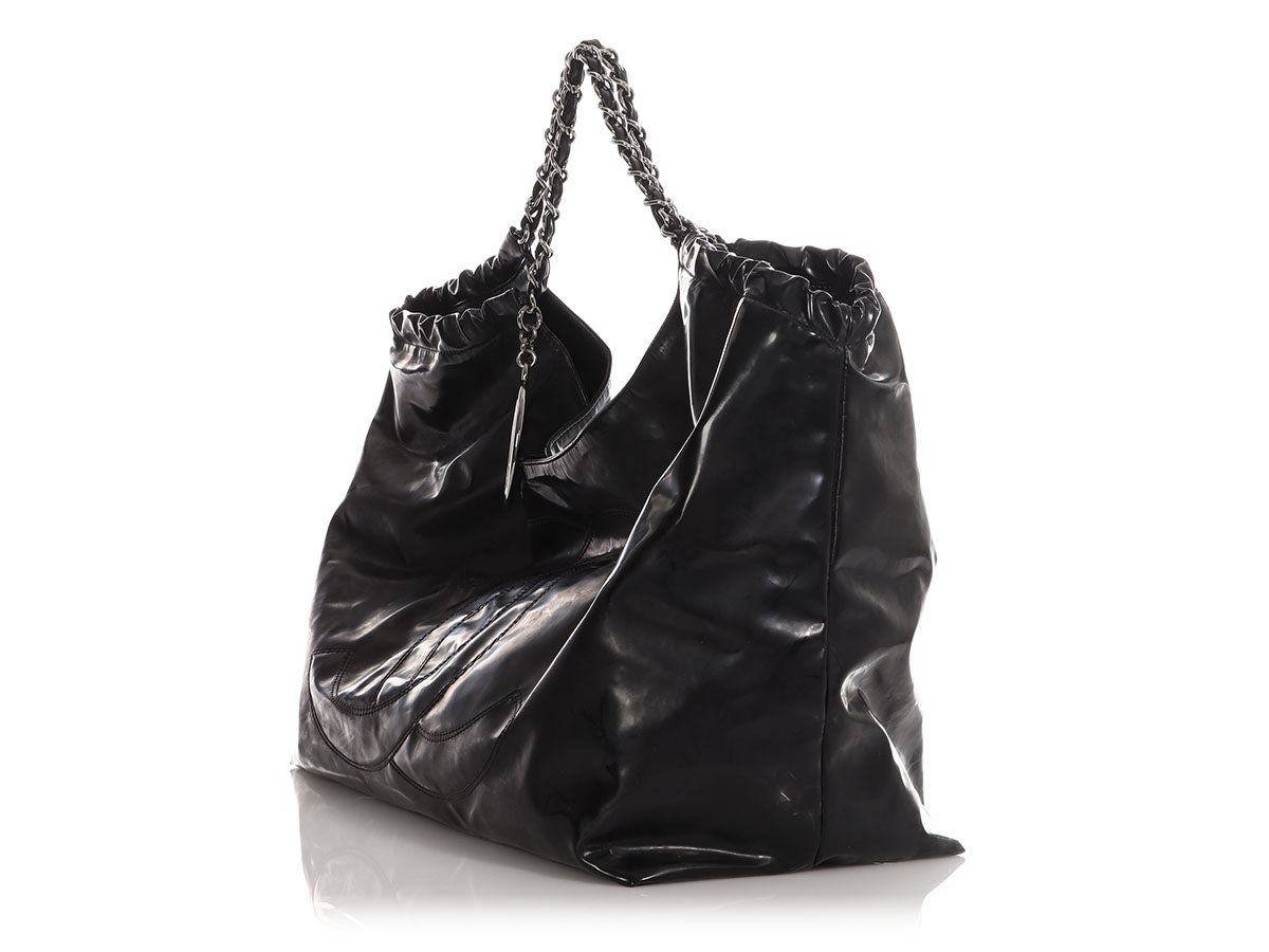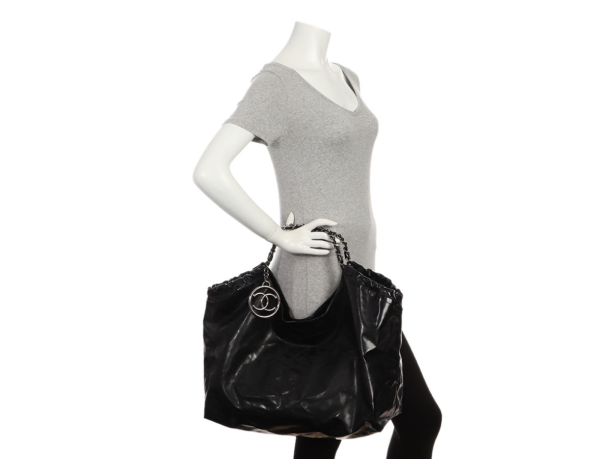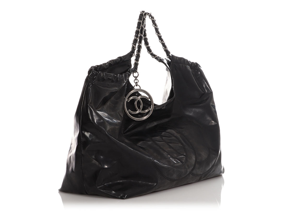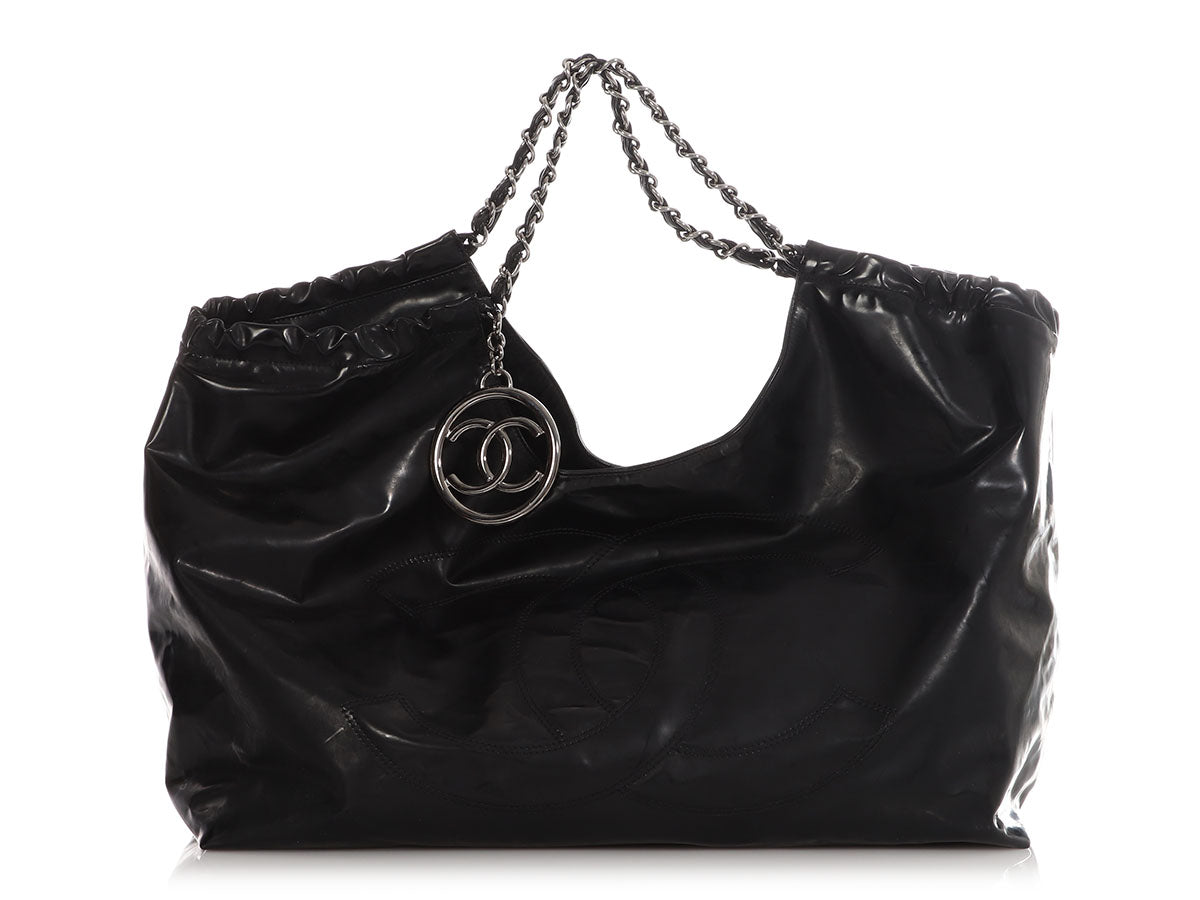 Chanel XL Black Vinyl Coco Cabas Tote
