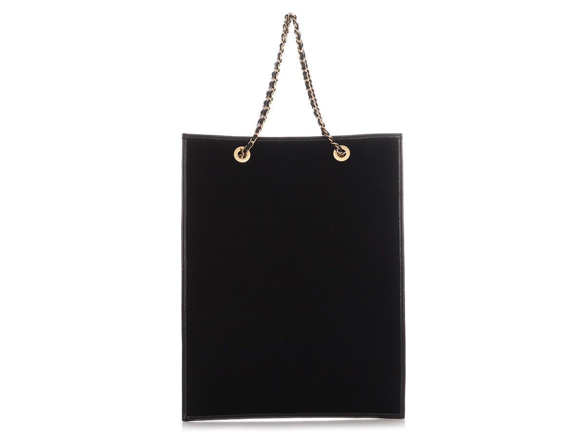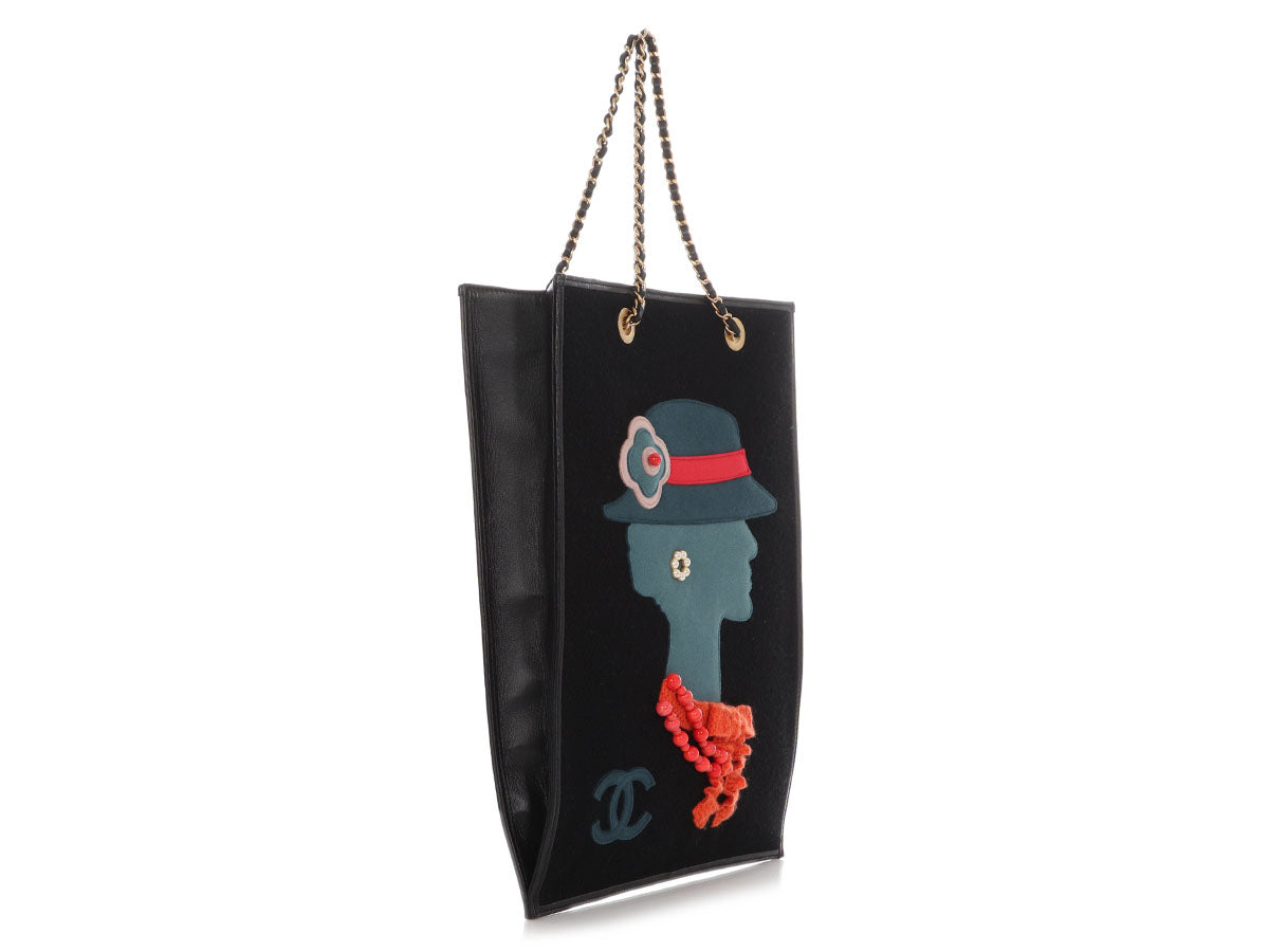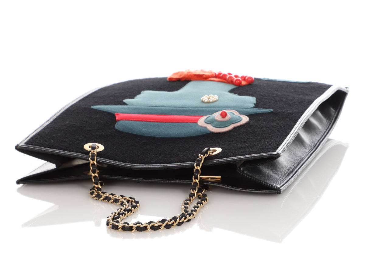 Chanel Vintage Black Wool Coco Silhouette Tote