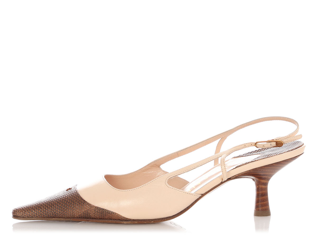Chanel Light Pink Lizard Embossed Cap Toe Slingbacks