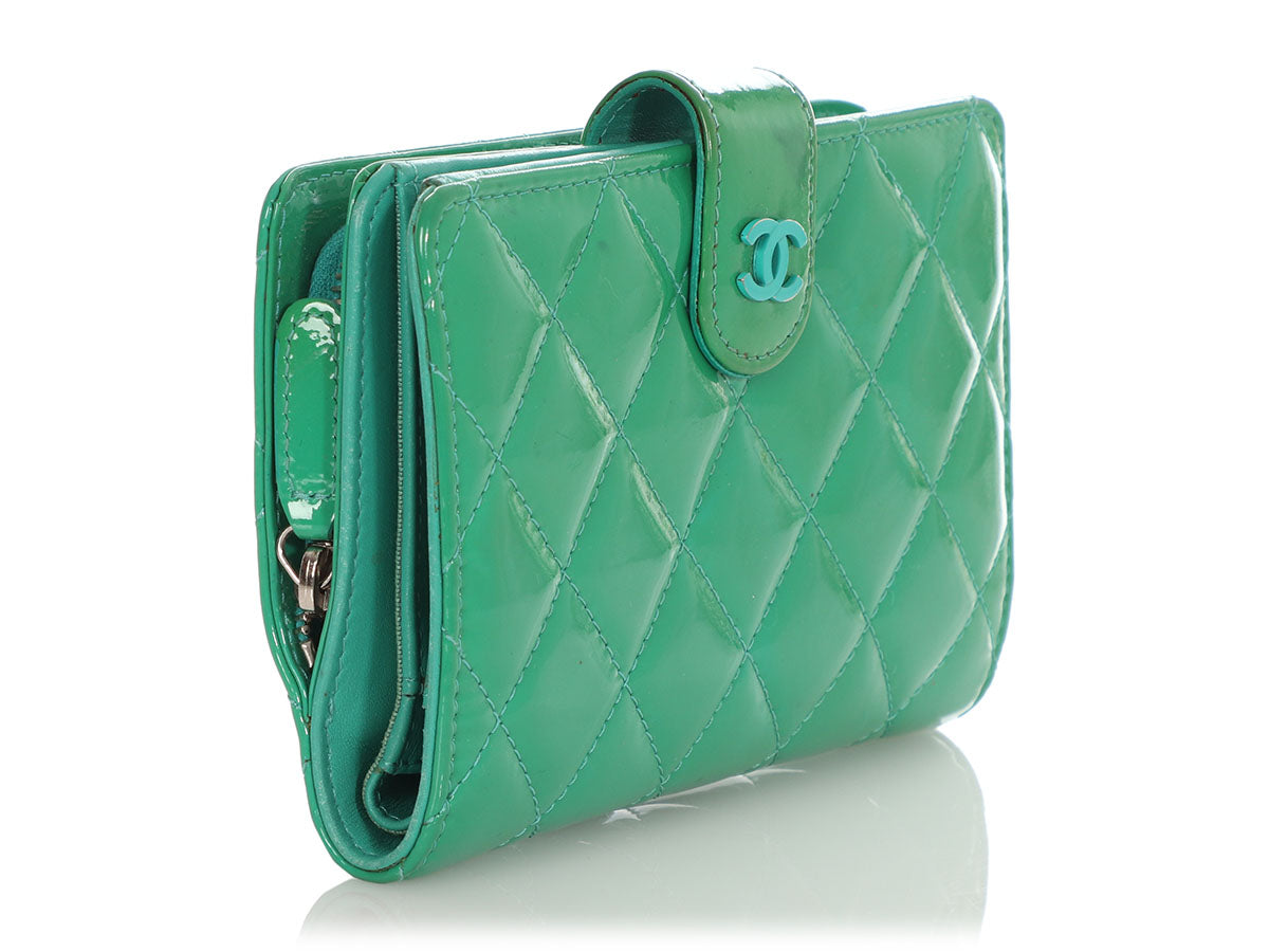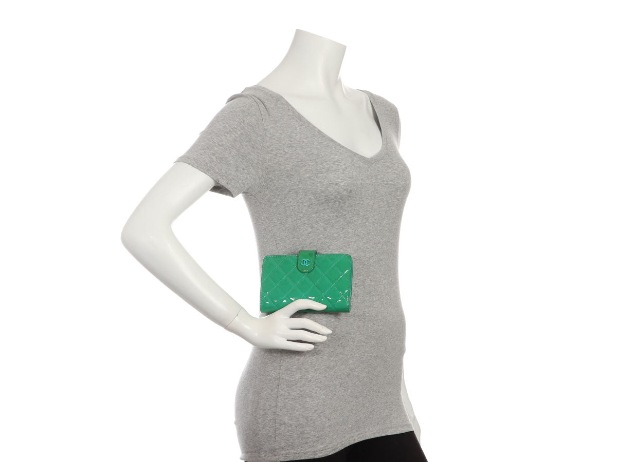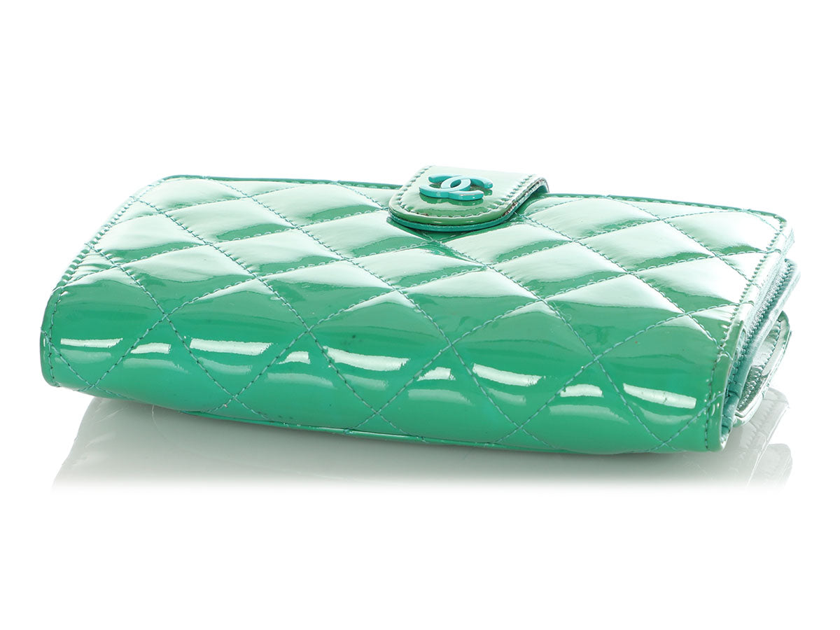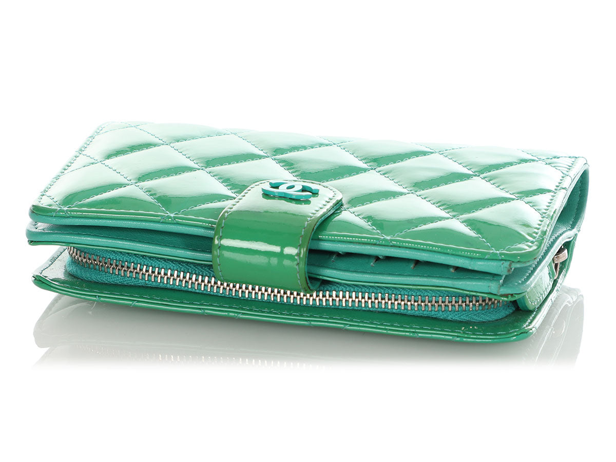 Chanel Green Quilted Patent L-Zip Pocket Wallet