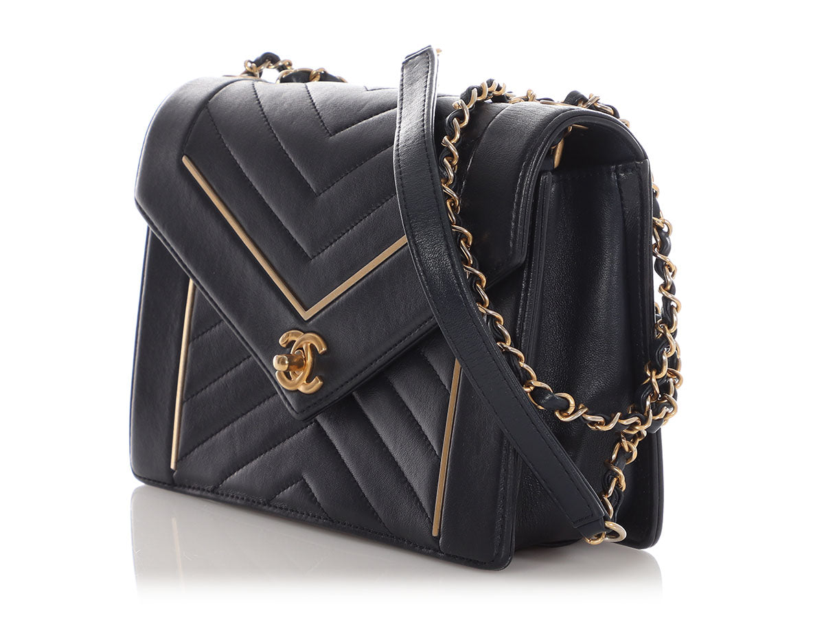 Chanel Navy Calfskin Reversed Chevron Envelope Flap Bag