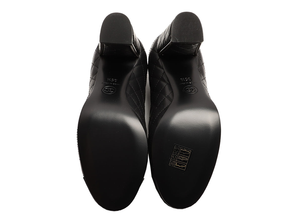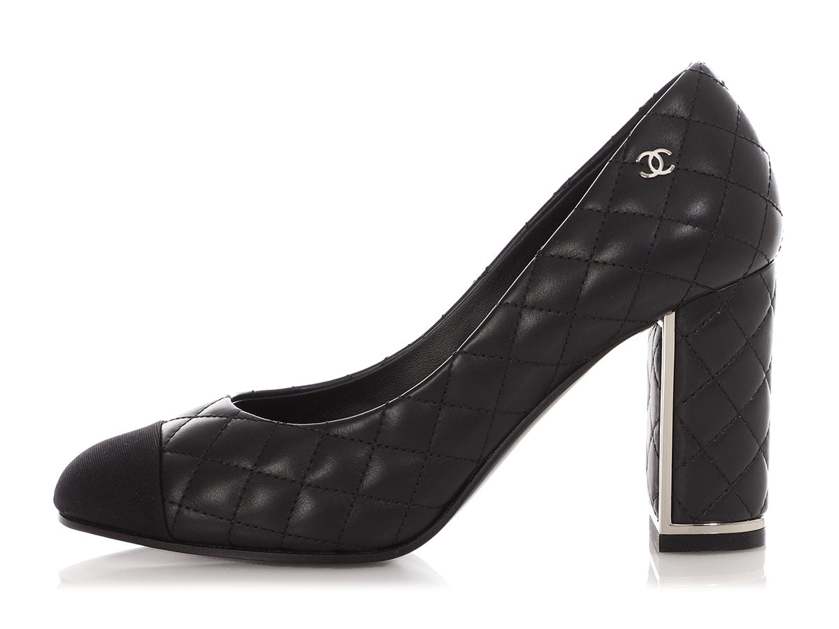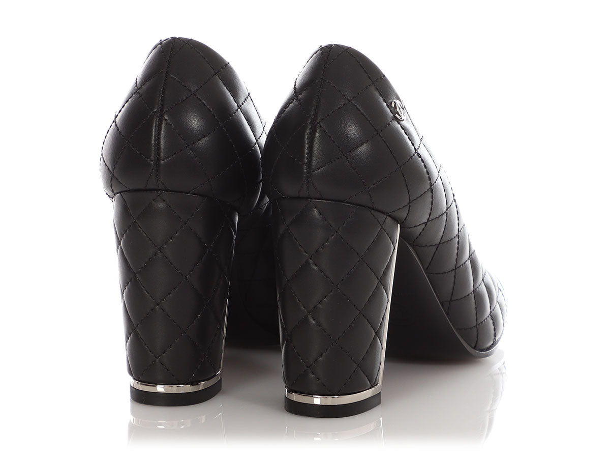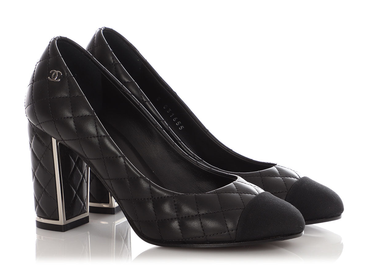Chanel’s Black Quilted Leather Pumps have a classic CC look with a touch of metallic flash! Silver hardware trims the 3-inch block heels, while the uppers are made of diamond-quilted black leather, the inners and soles are made of smooth black leather, and the toes are capped in black fabric. Brand new with a box and two dustbags, these are a modern take on a timeless Chanel look!