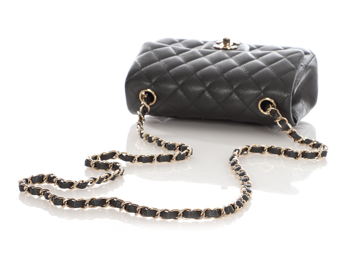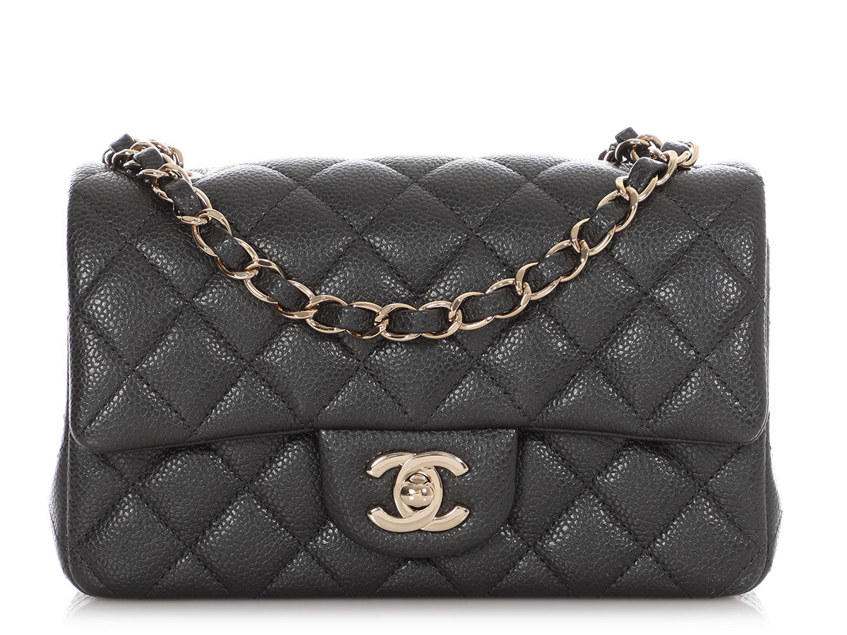Chanel Mini Dark Gray Quilted Caviar Rectangular Classic