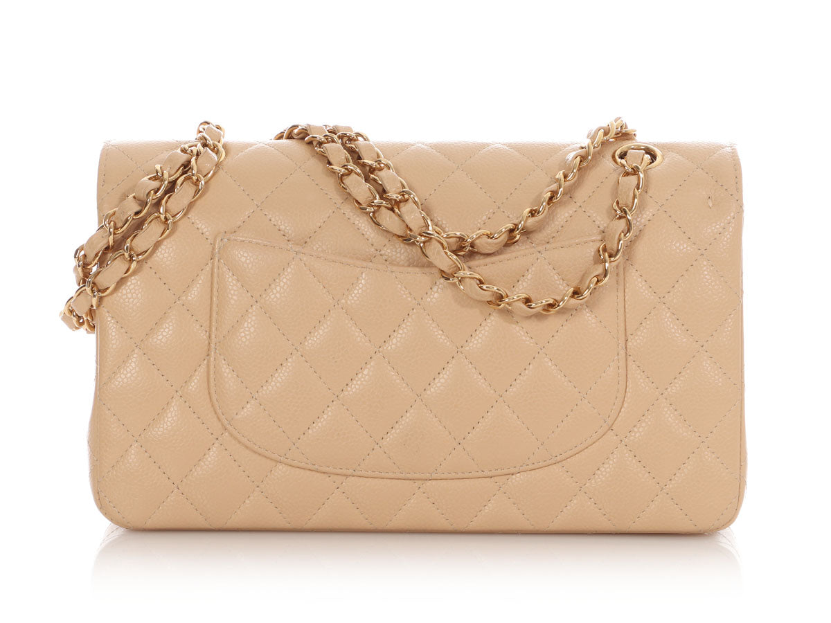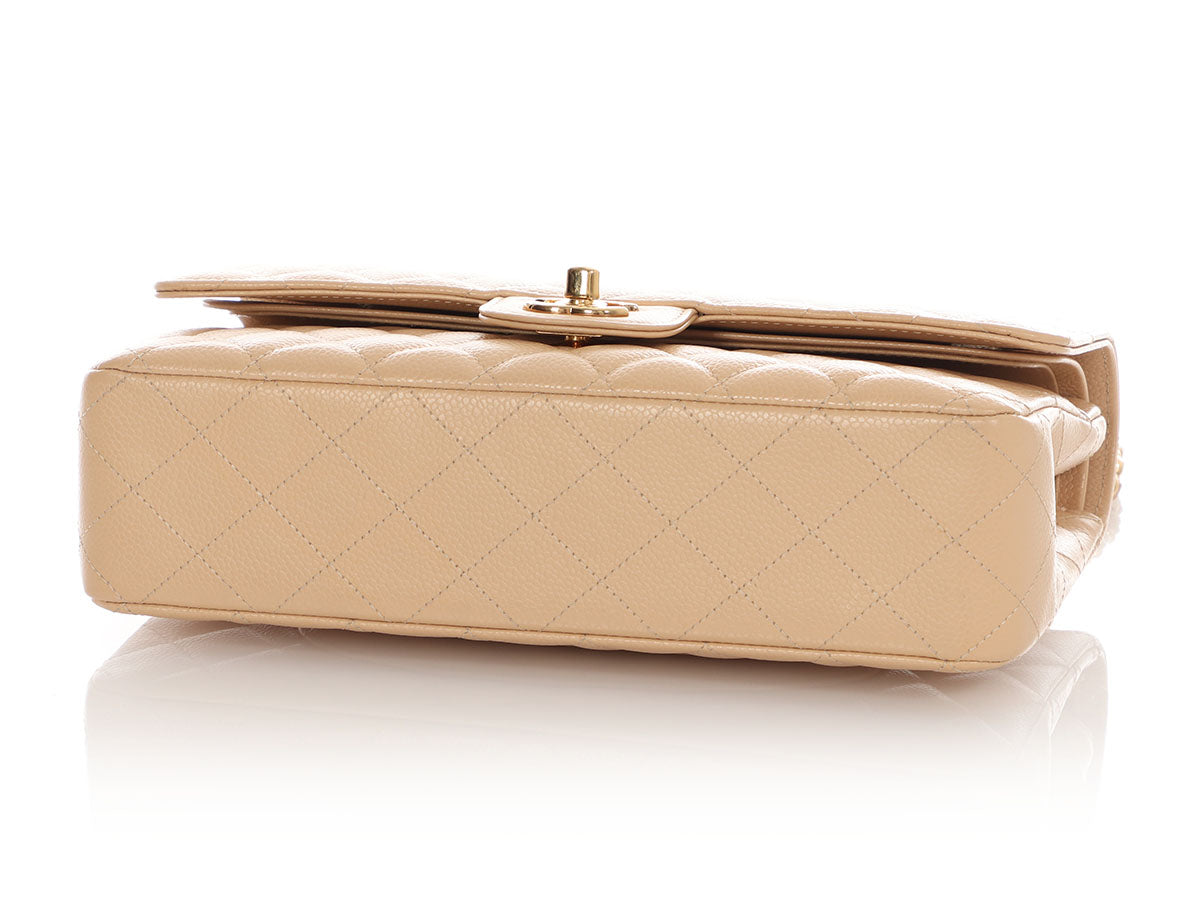 Chanel Medium/Large Beige Claire Quilted Caviar Classic Double Flap