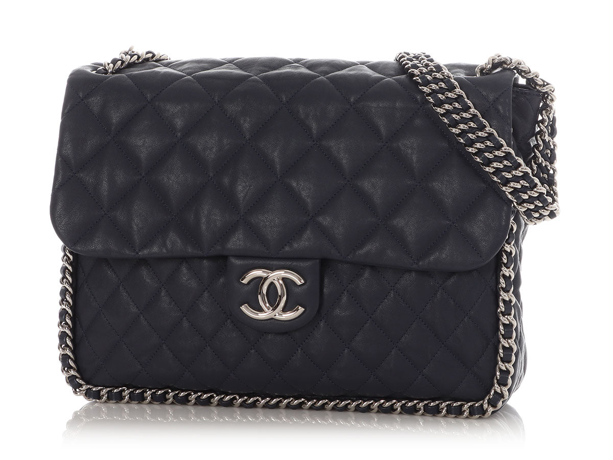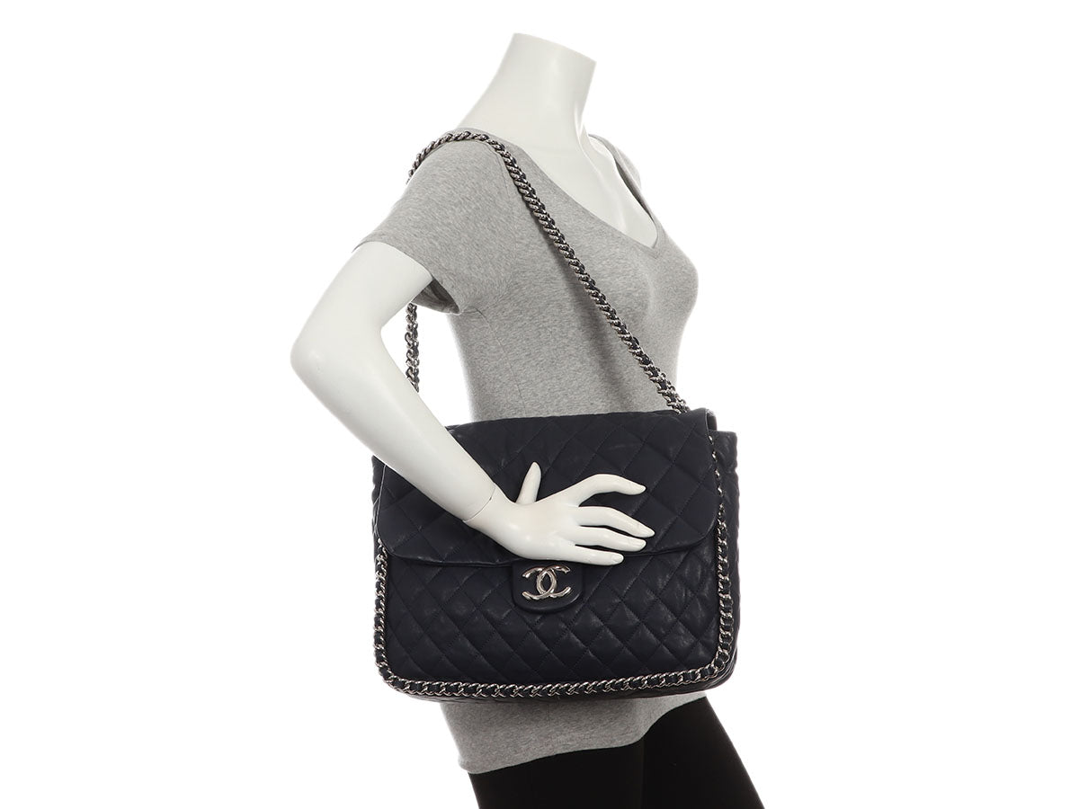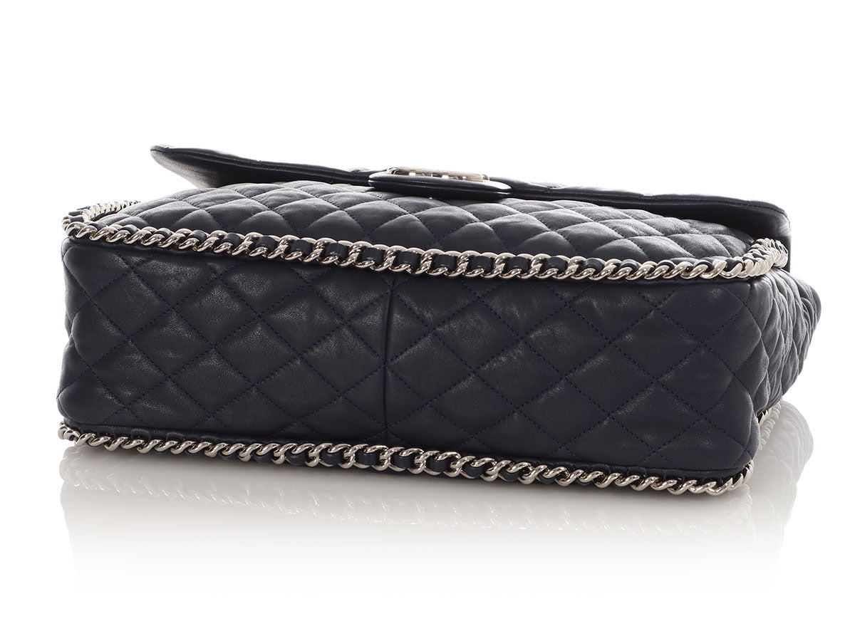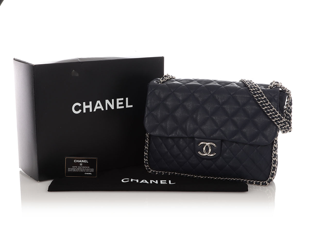 Chanel Maxi Navy Quilted Washed Lambskin Chain Around Flap