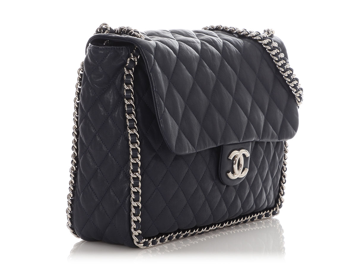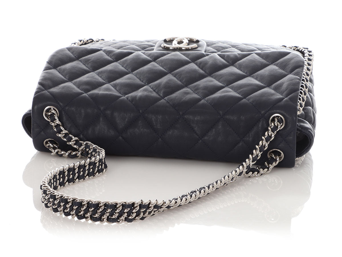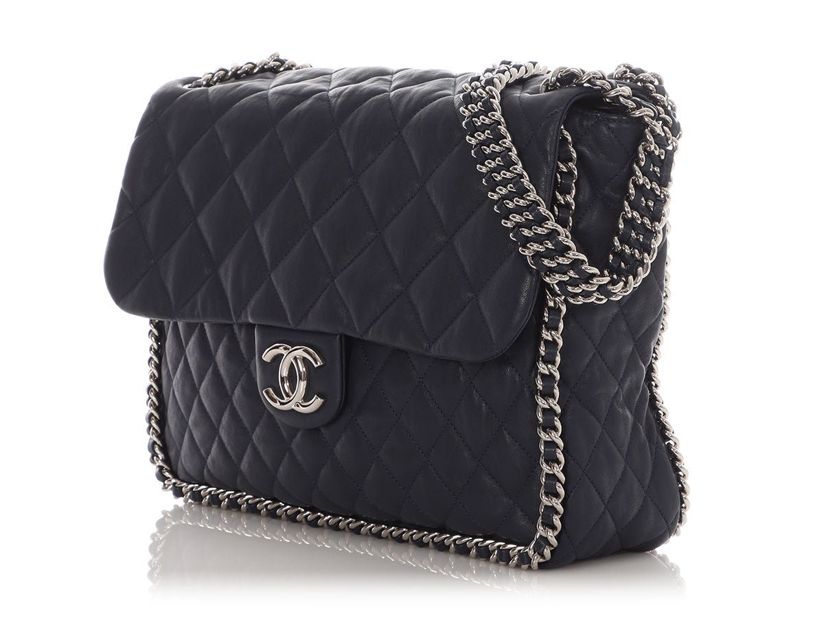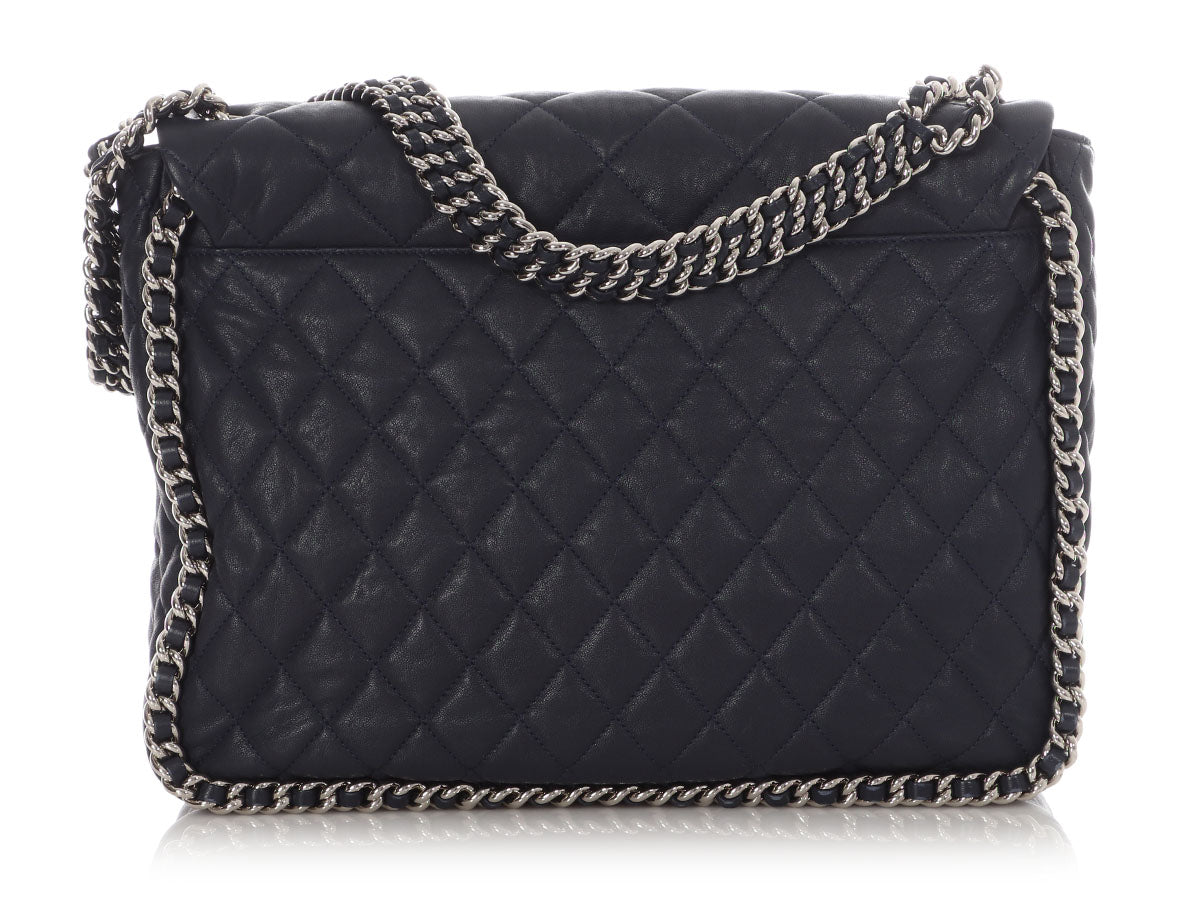 Chanel Maxi Navy Quilted Washed Lambskin Chain Around Flap