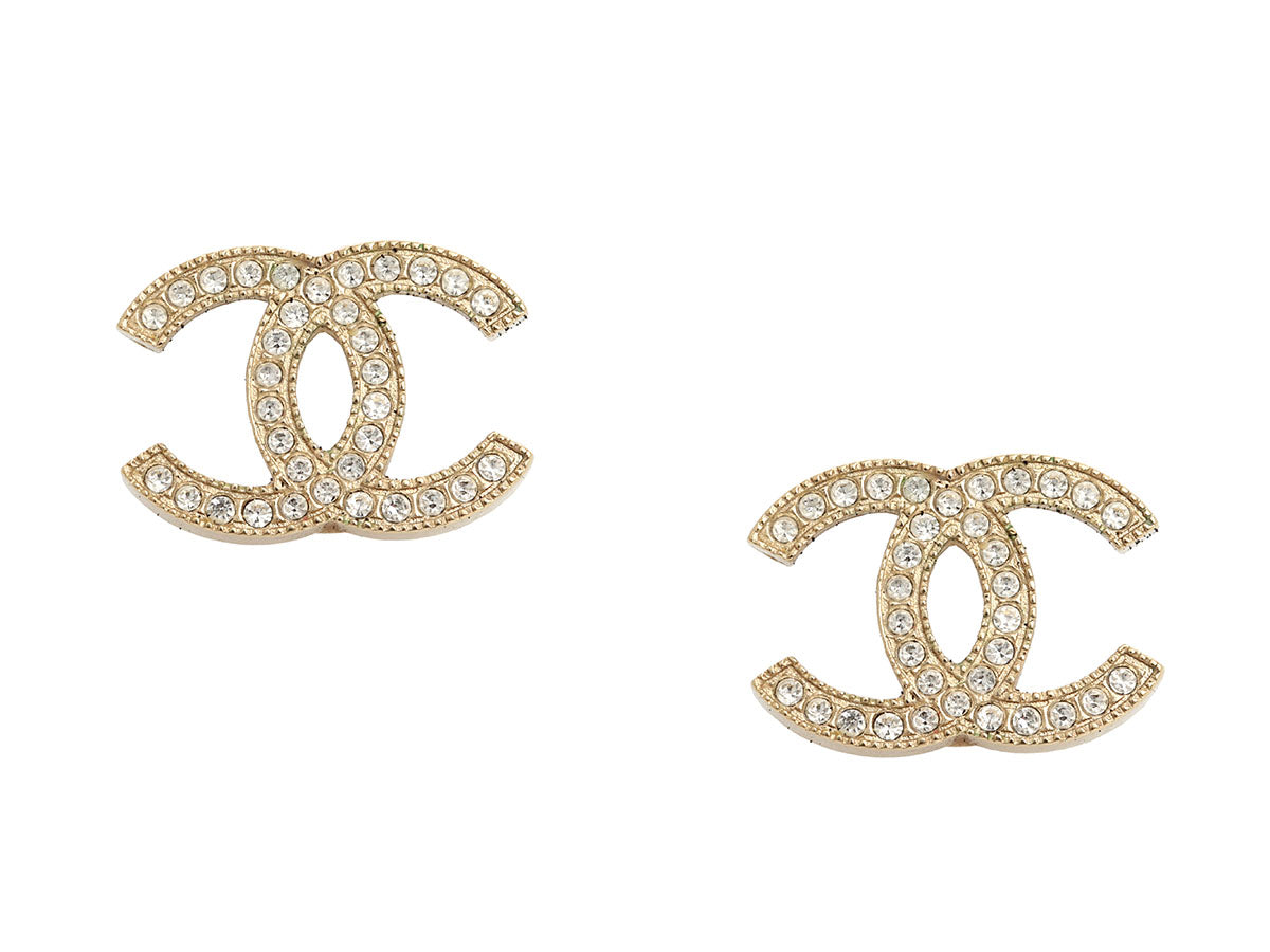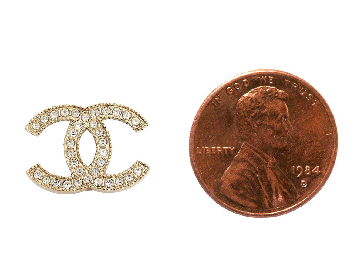 Chanel’s Medium Crystal Logo Pierced Earrings are just big enough to show your designer love but not so large that they shout it from the rooftops! Bezel-set white crystals adorn the entire surface of the notched gold-tone metal CC shapes and they attach to the lobe with posts and round plastic backs. In very good condition with a box that’s not in the best of condition, they have scratches on the metal and the backs don’t match. This classic shape never goes out of style!