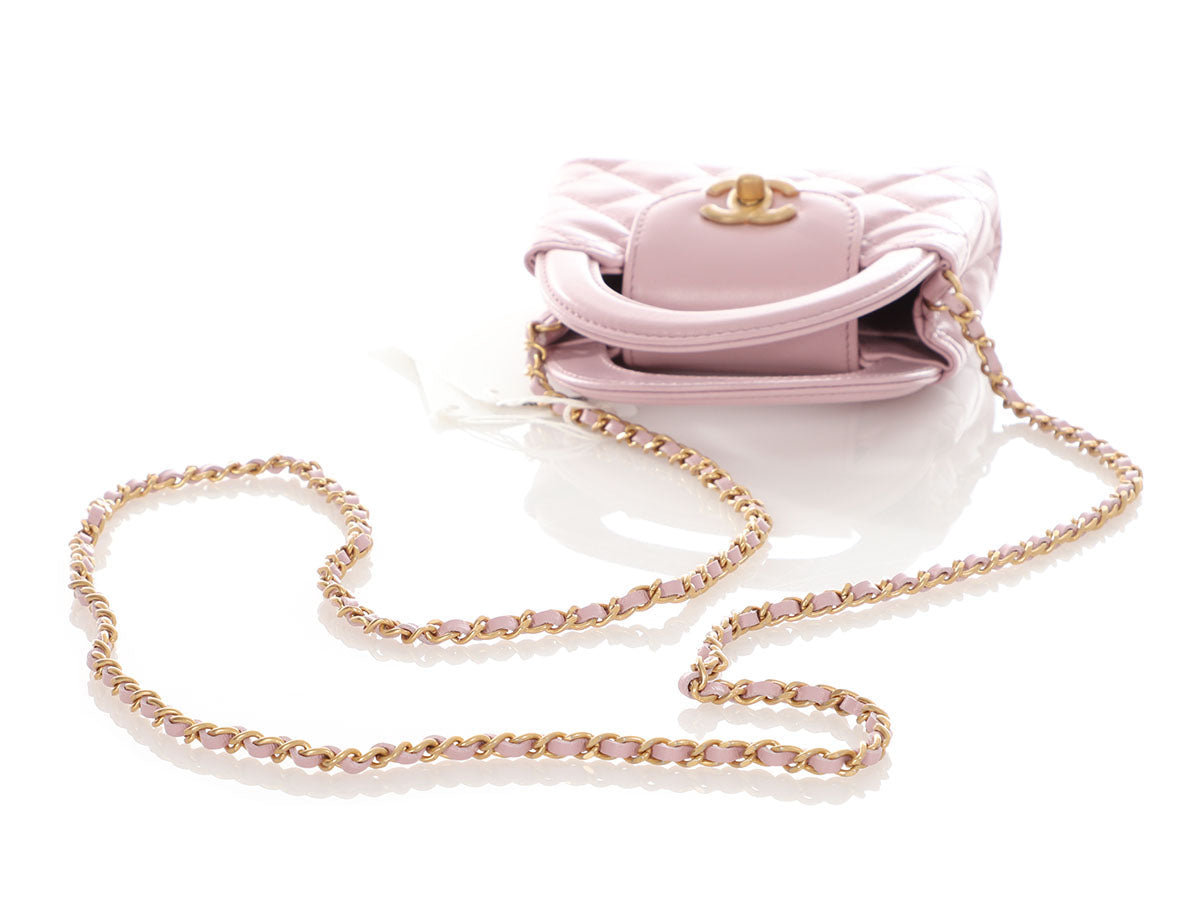 Chanel’s Pink Quilted Calfskin Kelly Shopper in Nano sizing is even smaller than a Mini and just as adorable! Paired with antiqued gold-tone hardware, the unquilted flap has a CC turnlock that opens to matching-colored leather with one slide pocket inside. New and never worn from 2024, it comes with the tag on, a dustbag, and box. This tiny treasure has dual hard, flat handles with a 1.5-inch drop plus a leather-and-chain crossbody strap with a 22.5-inch drop for complete hands-free convenience!