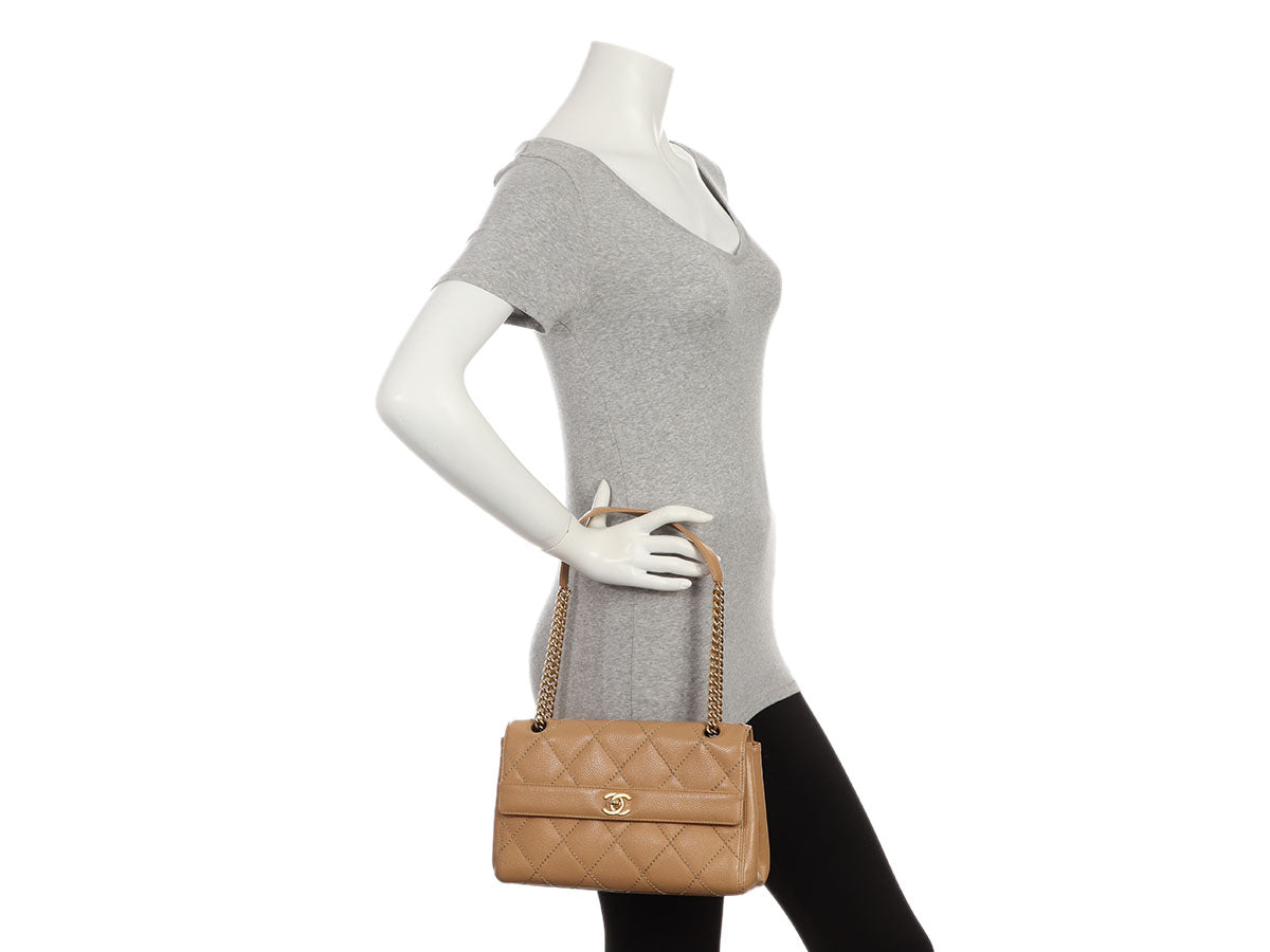 Chanel Vintage Beige Quilted Caviar Wild Stitch Flap