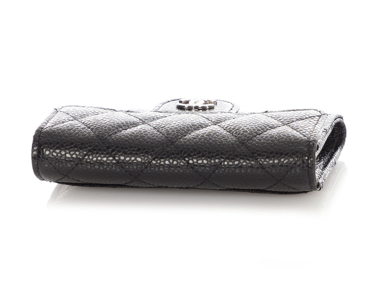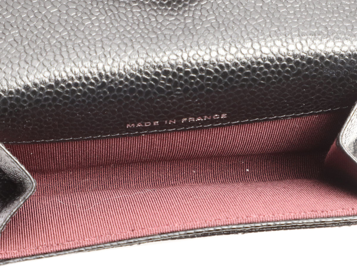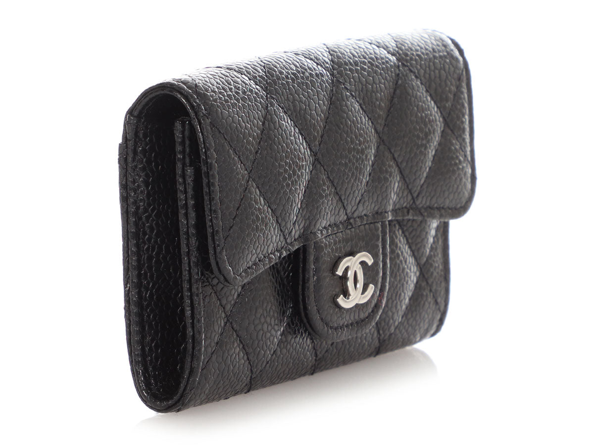 Chanel’s Black Quilted Caviar Classic Card Holder is brand new from 2021! It has a snapped flap that is adorned with a silver-tone CC logo and opens to a slide pocket on the face and a pocketless burgundy-fabric interior, while a slide pocket awaits your bidding on the back face. This unisex accessory comes with a pouch and box and is ready to carry your business cards, ID, and a few hard-won dollars!