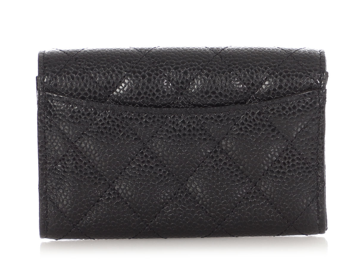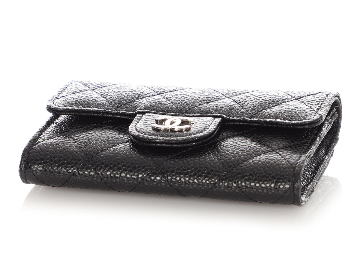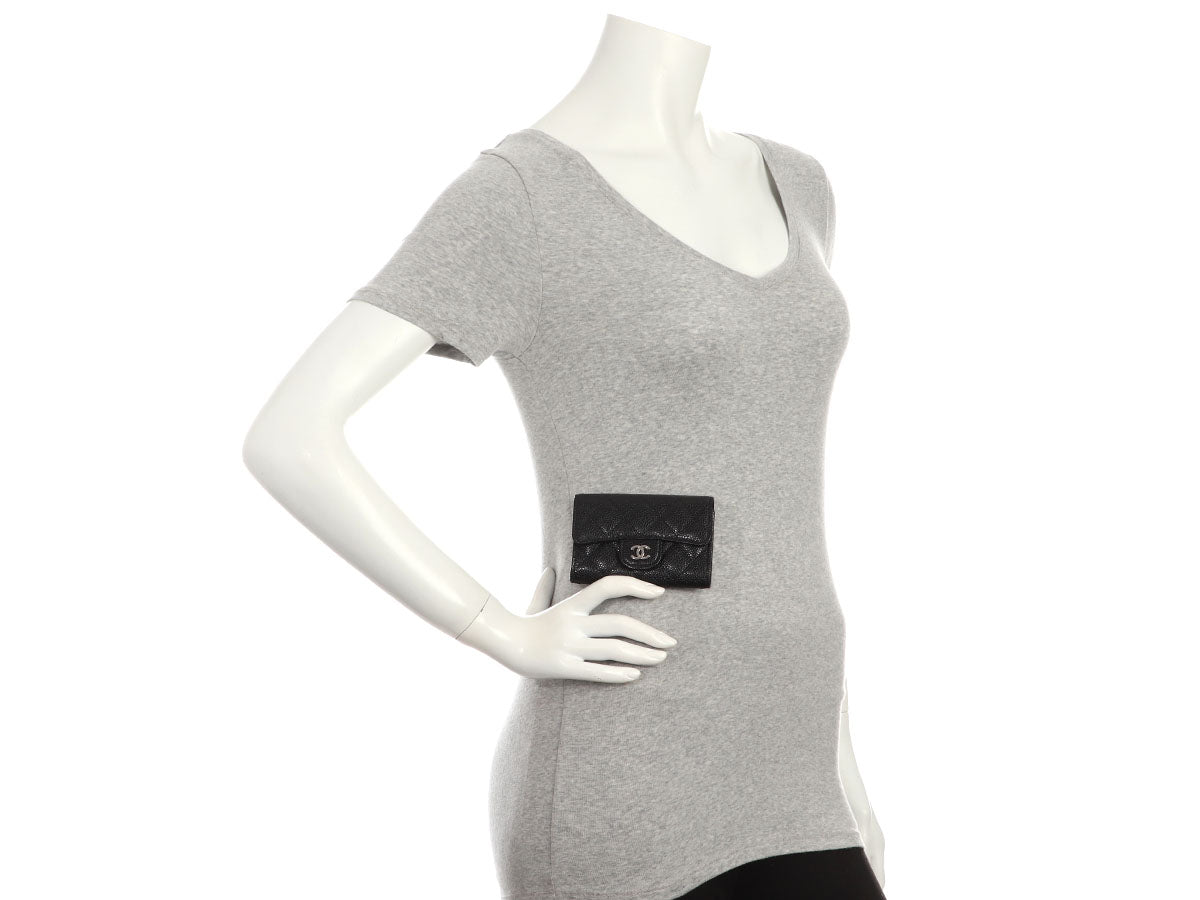Chanel’s Black Quilted Caviar Classic Card Holder is brand new from 2021! It has a snapped flap that is adorned with a silver-tone CC logo and opens to a slide pocket on the face and a pocketless burgundy-fabric interior, while a slide pocket awaits your bidding on the back face. This unisex accessory comes with a pouch and box and is ready to carry your business cards, ID, and a few hard-won dollars!