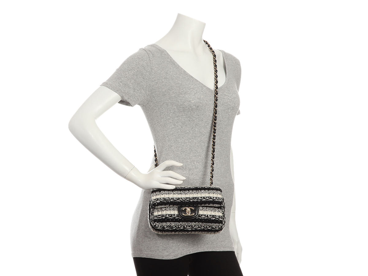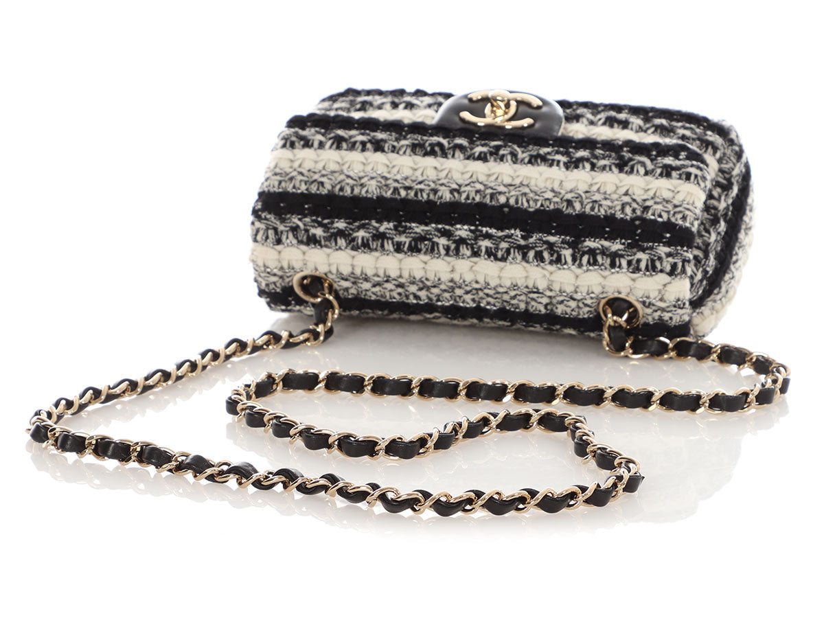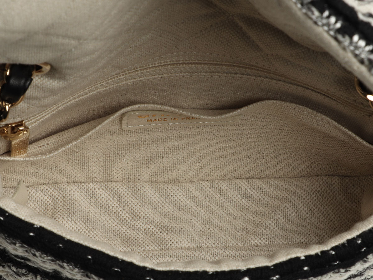Chanel’s Mini Black and White Tweed Classic is a rounded bundle of fun! In soft tweed, it’s paired with black-leather trim and gold-tone hardware in the flap’s logo turnlock that opens to a cream-fabric interior with one zipped and one slide pocket, while an additional slide pocket can be found on the back face. The leather-and-chain crossbody strap has a 22-inch drop for hands-free convenience. In great condition from 2019, it comes with a dustbag and has a small manufacturing flaw in the tweed at the bottom. This little bag takes classic tweed to a very cool monochromatic level!