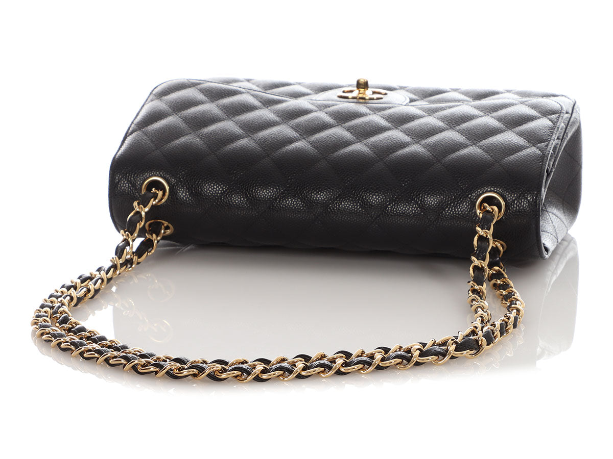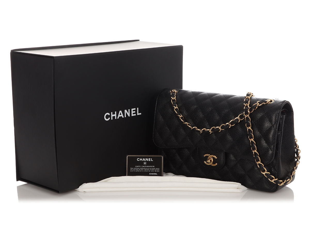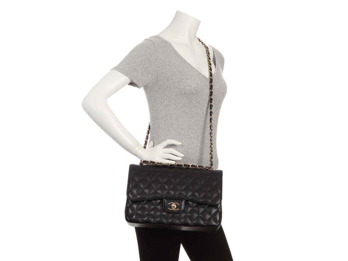 Chanel Jumbo Black Quilted Caviar Classic Double Flap