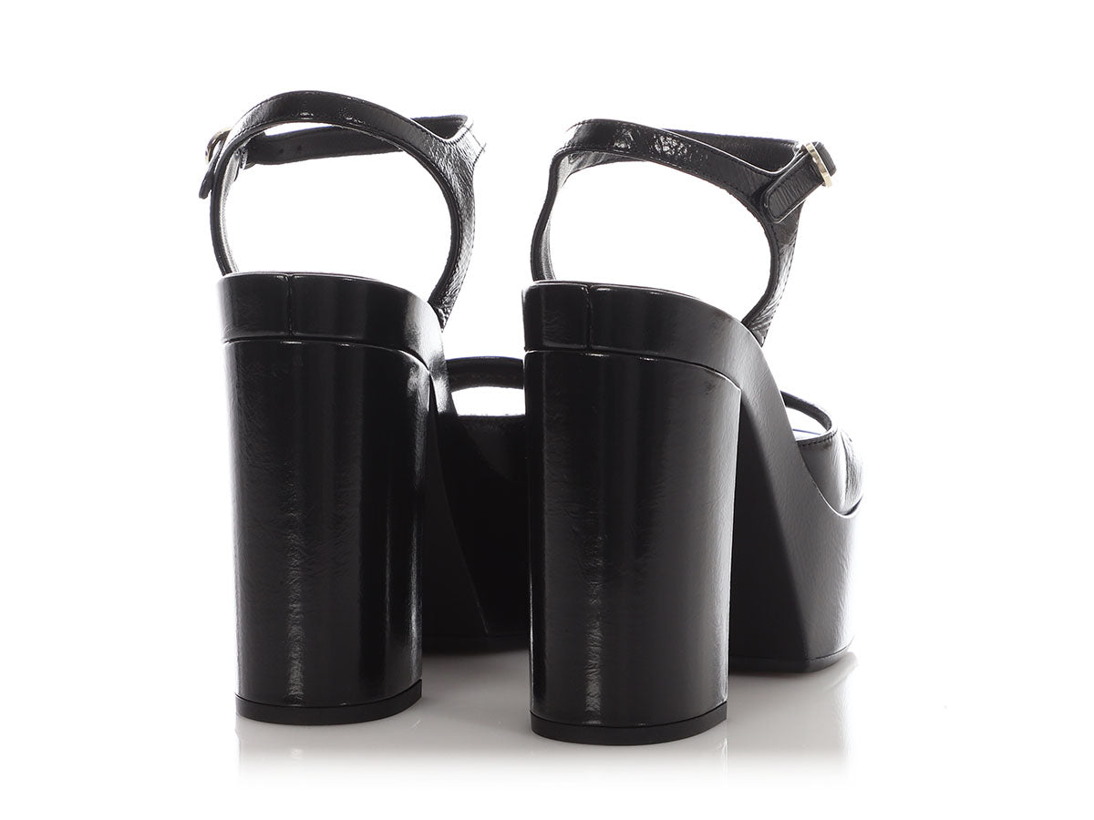 Chanel’s Black Patent Platform Sandals elevate your style with a glossy shine! Made from black crinkled patent leather with open toes, covered 4.25-inch chunky heels, and 1.75-inch platforms, they have slim ankle straps that secure with buckles. Subtle light gold CC logos on the sides add a hint of designer shine to these statement heels, then leather inners and quilted rubber soles complete the look. New with two dustbags, these platforms lift your look to towering new heights!
