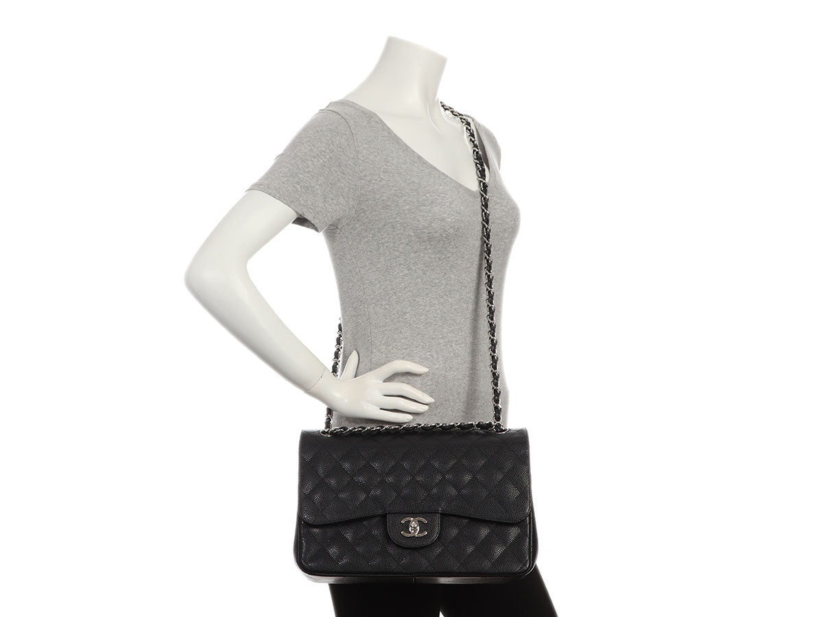Chanel Jumbo Black Quilted Caviar Classic Double Flap