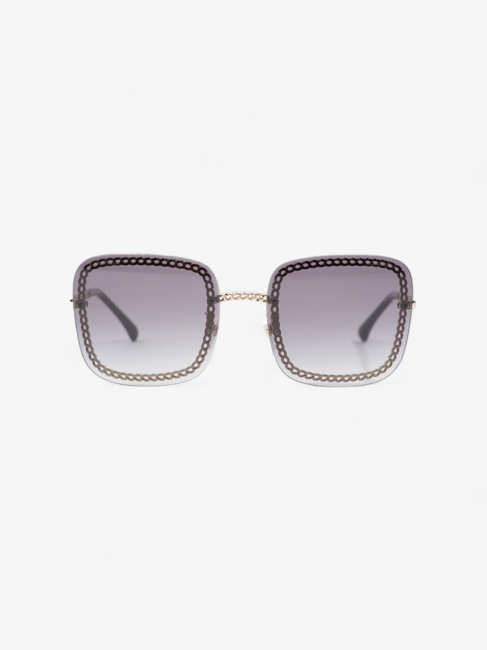 Chanel Chain Detailed Sunglasses with Double Chain Black / Gold Acetate 140mm
