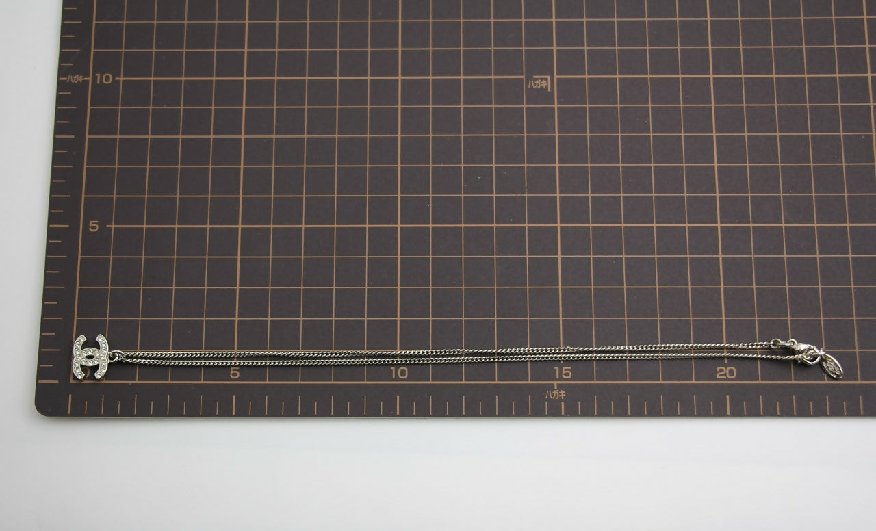 Chanel 10V Rhinestone Silver CC Mark Necklace