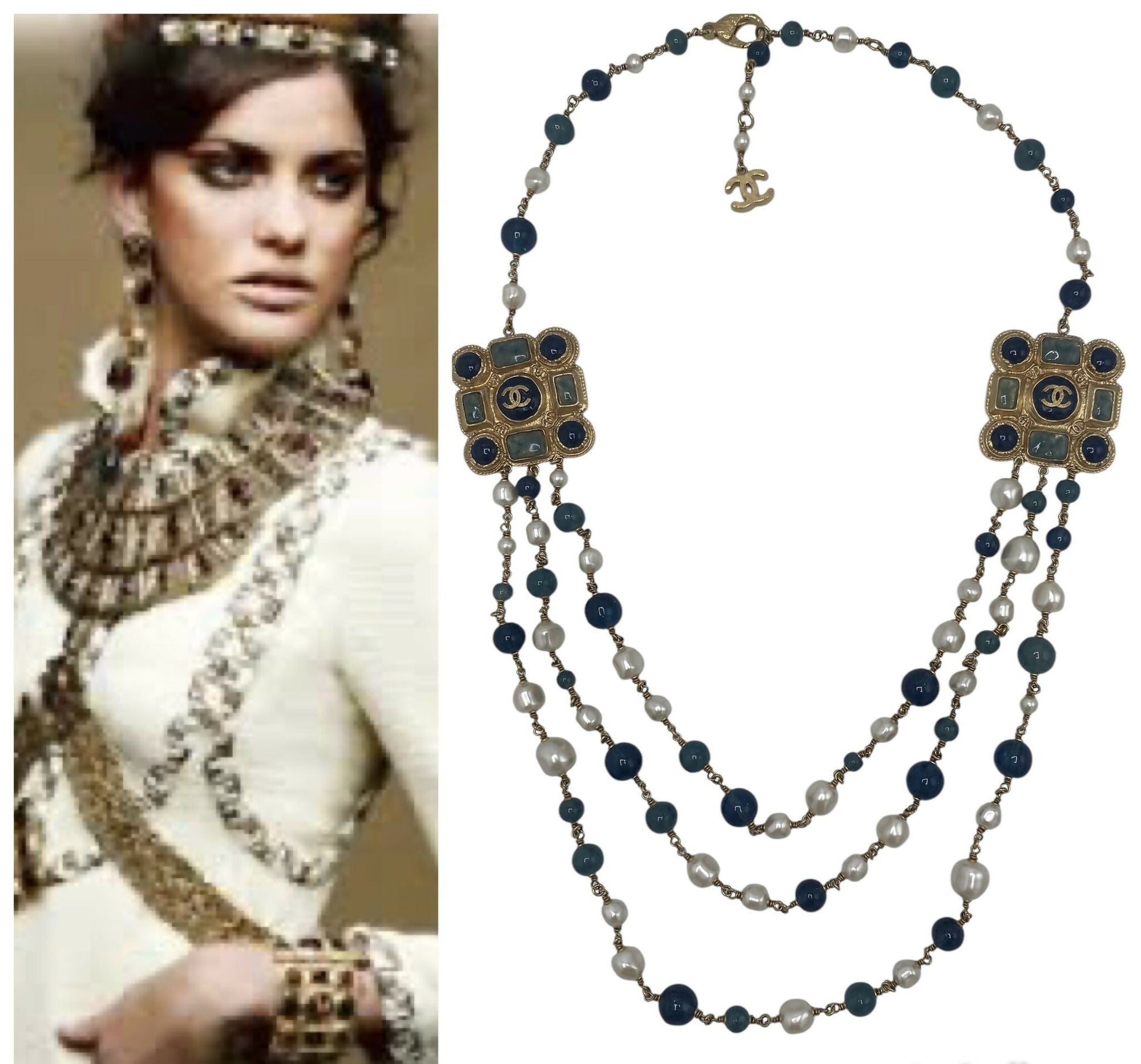 From the Chanel Pre-Fall 2011 Métier d'Arts Paris-Byzance Collection by Karl Lagerfeld, as seen on the Runway on Multiple Looks. Inspired by the splendor of Byzantine mosaics, this is an exceptional 3 strand necklace or belt. The jewelry created for this collection was outstanding, and this is a real treasure.
