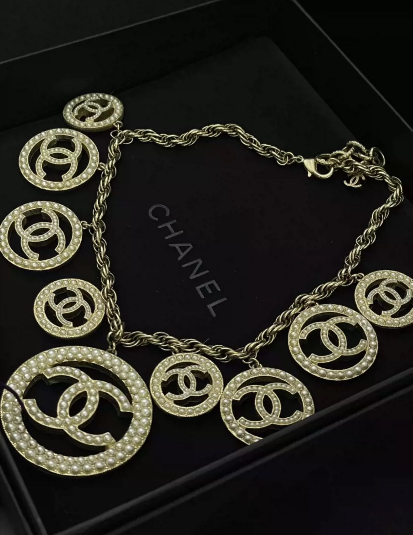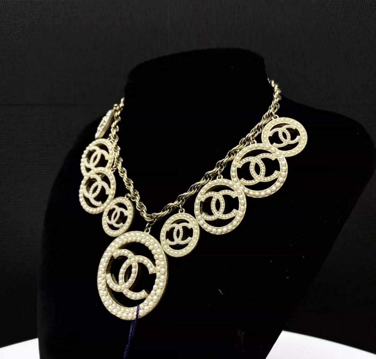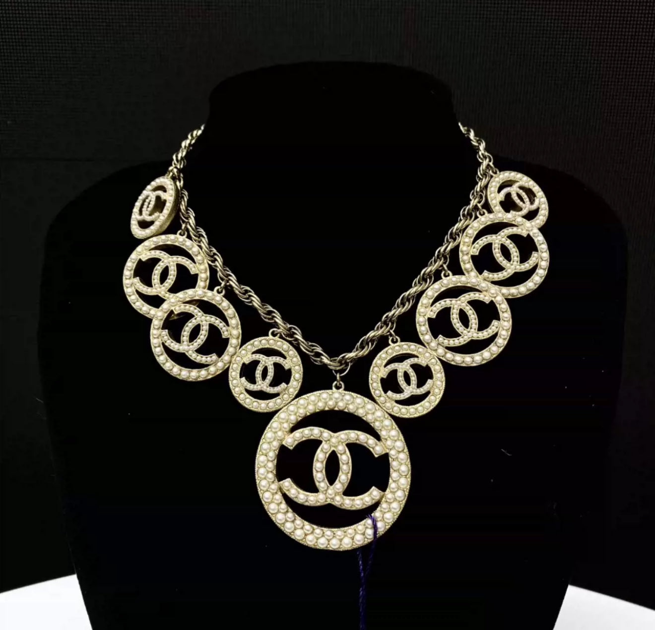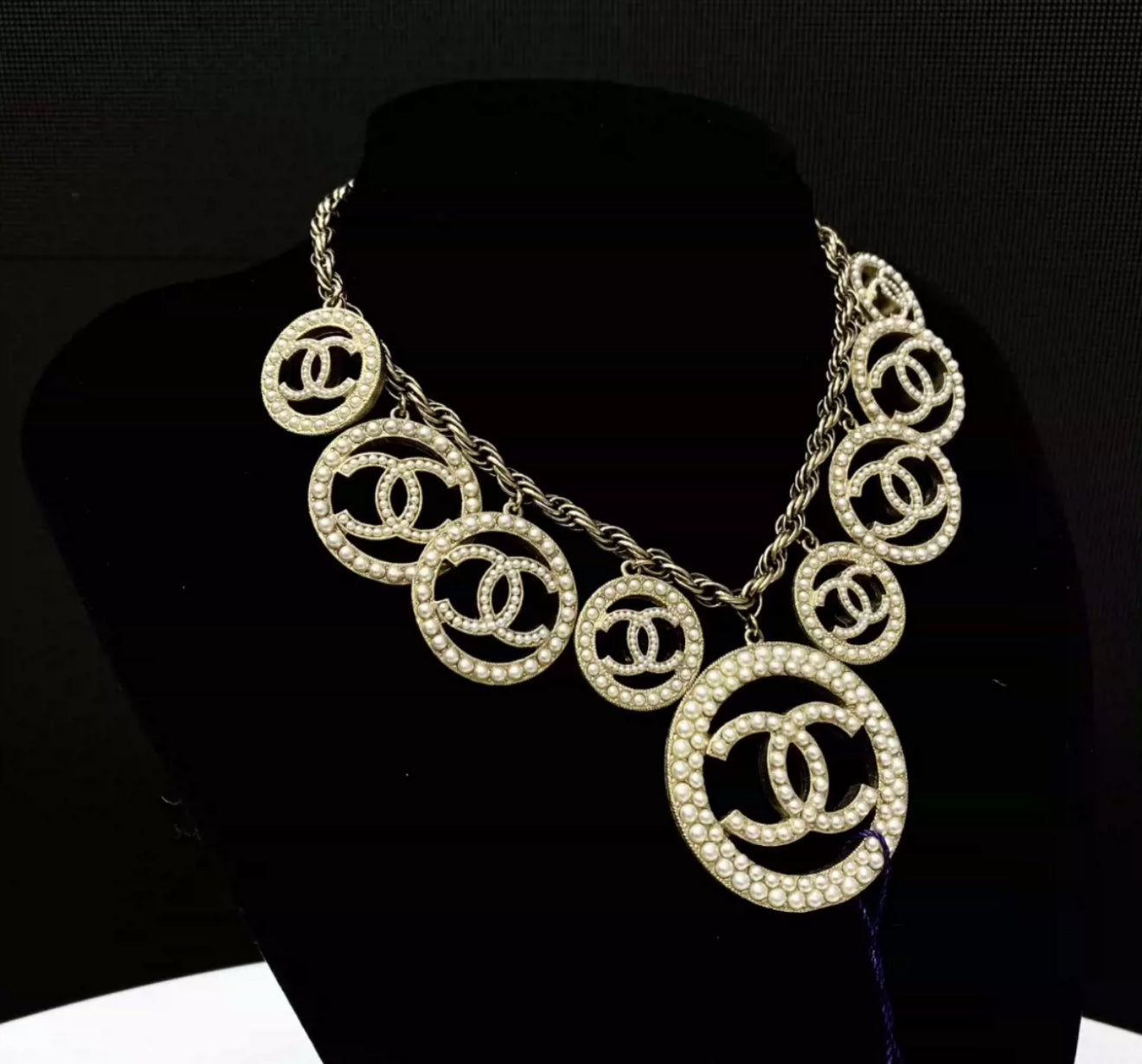 Chanel 17A double CC pearl necklace