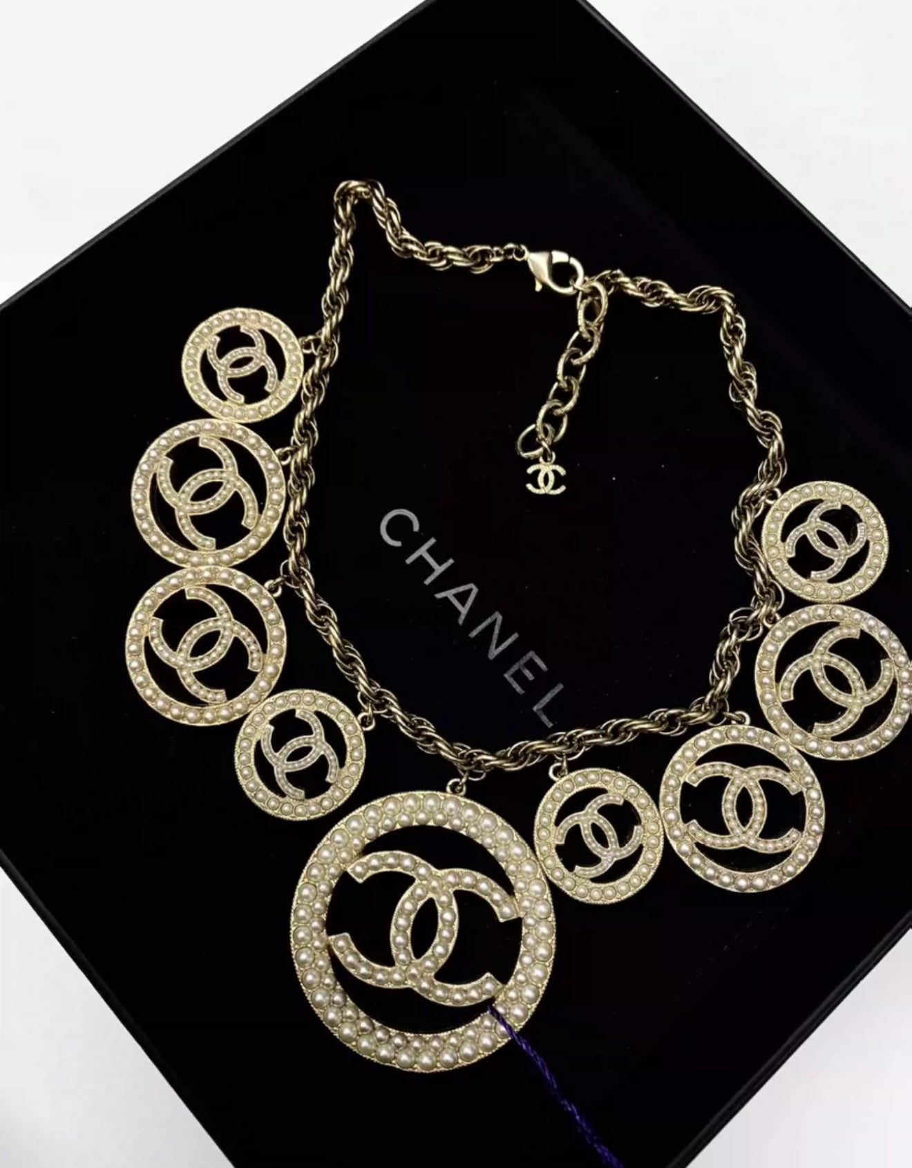 This Chanel 17A double CC pearl necklace is a rare and timeless piece, exuding a sense of sophistication and elegance. Its intricate design and high-quality materials make it a valuable addition to any jewelry collection. Own a piece of iconic fashion history with this exquisite necklace.