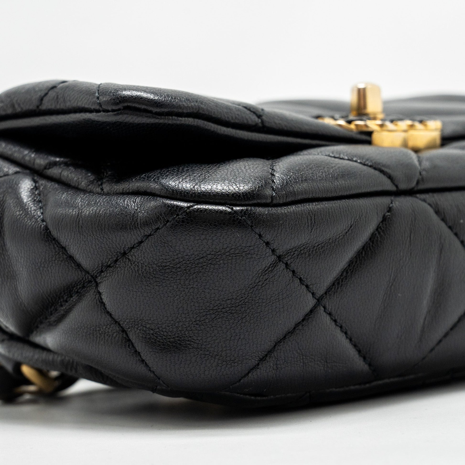 Chanel 19 Quilted Waist Belt Bag Shiny Goatskin Black