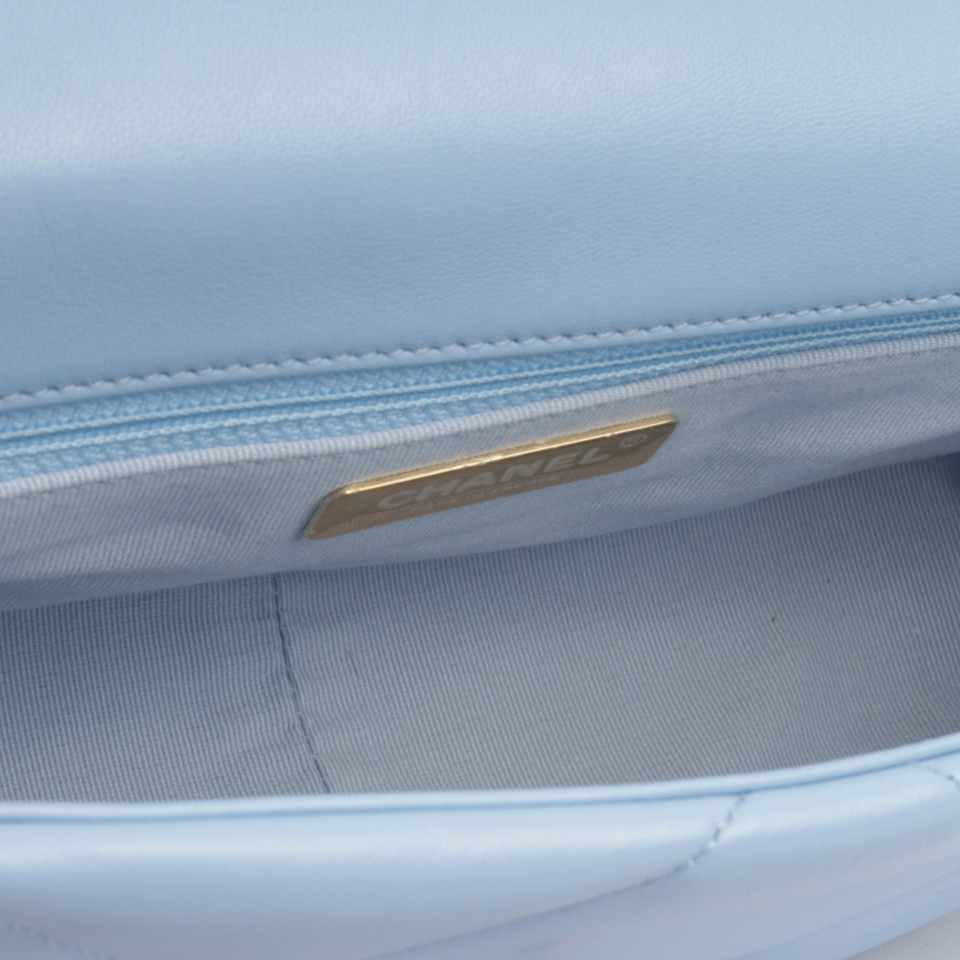 - Baby blue lambskin exterior