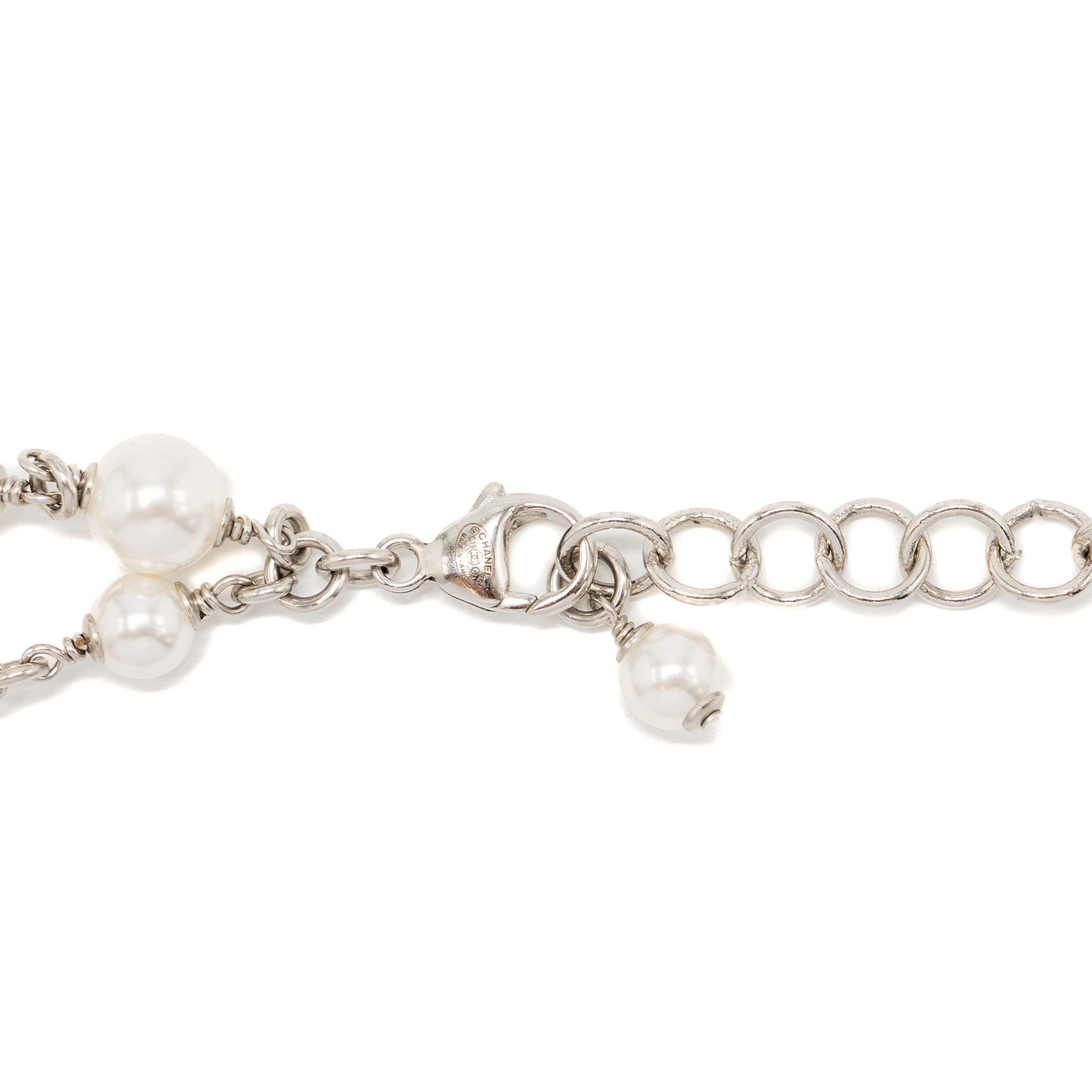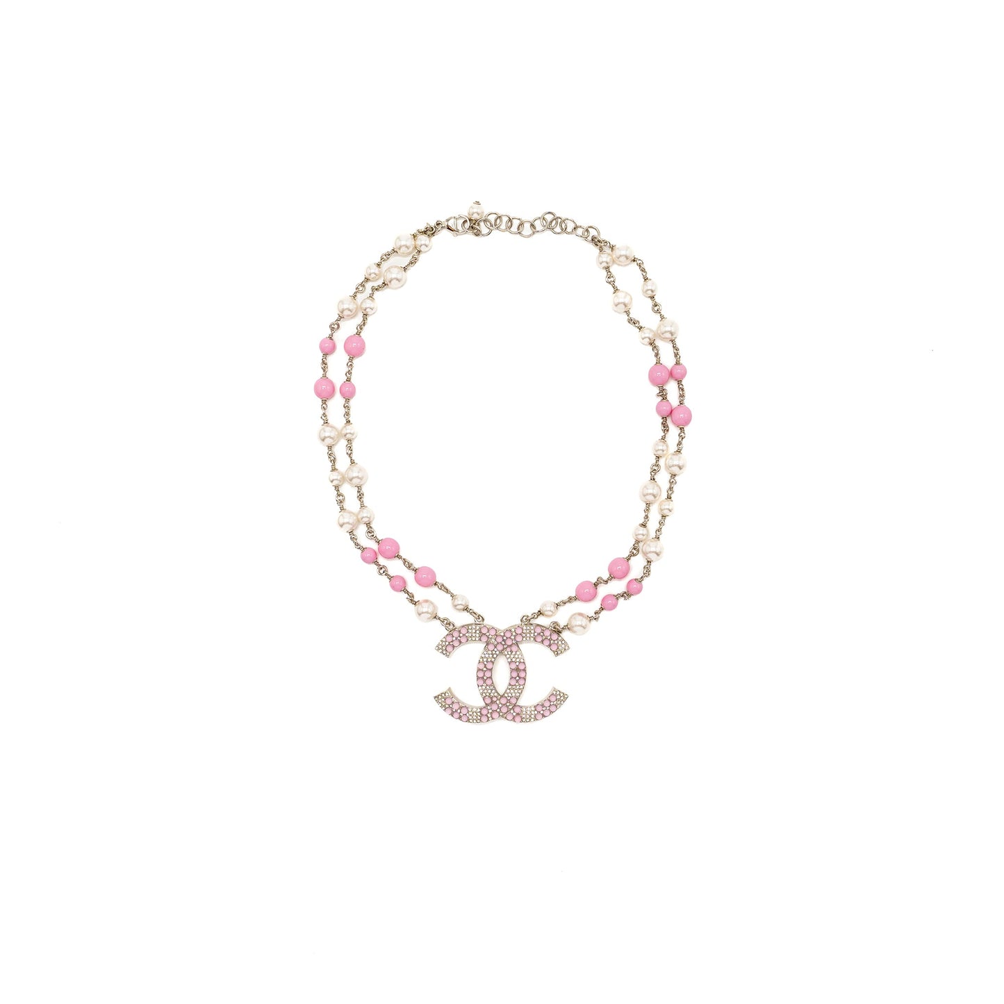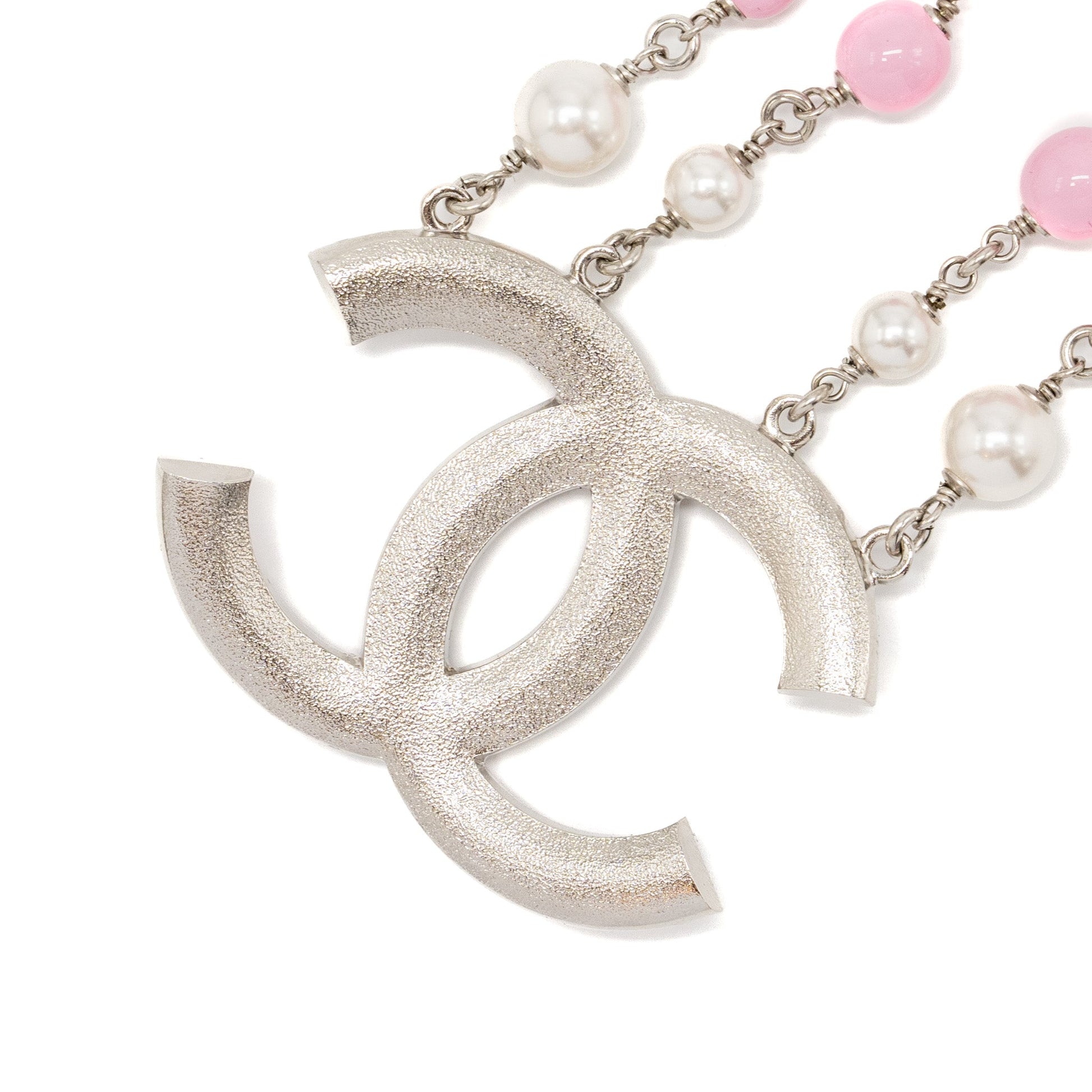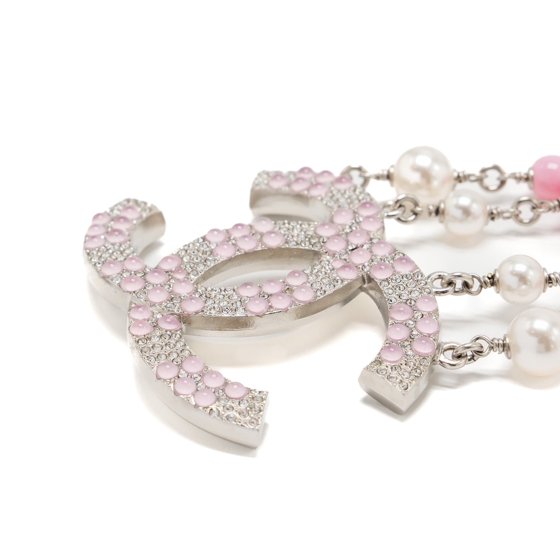 Chanel 19C Pearl/Crystal Necklace CC Logo Drop Pink/Silver Tone