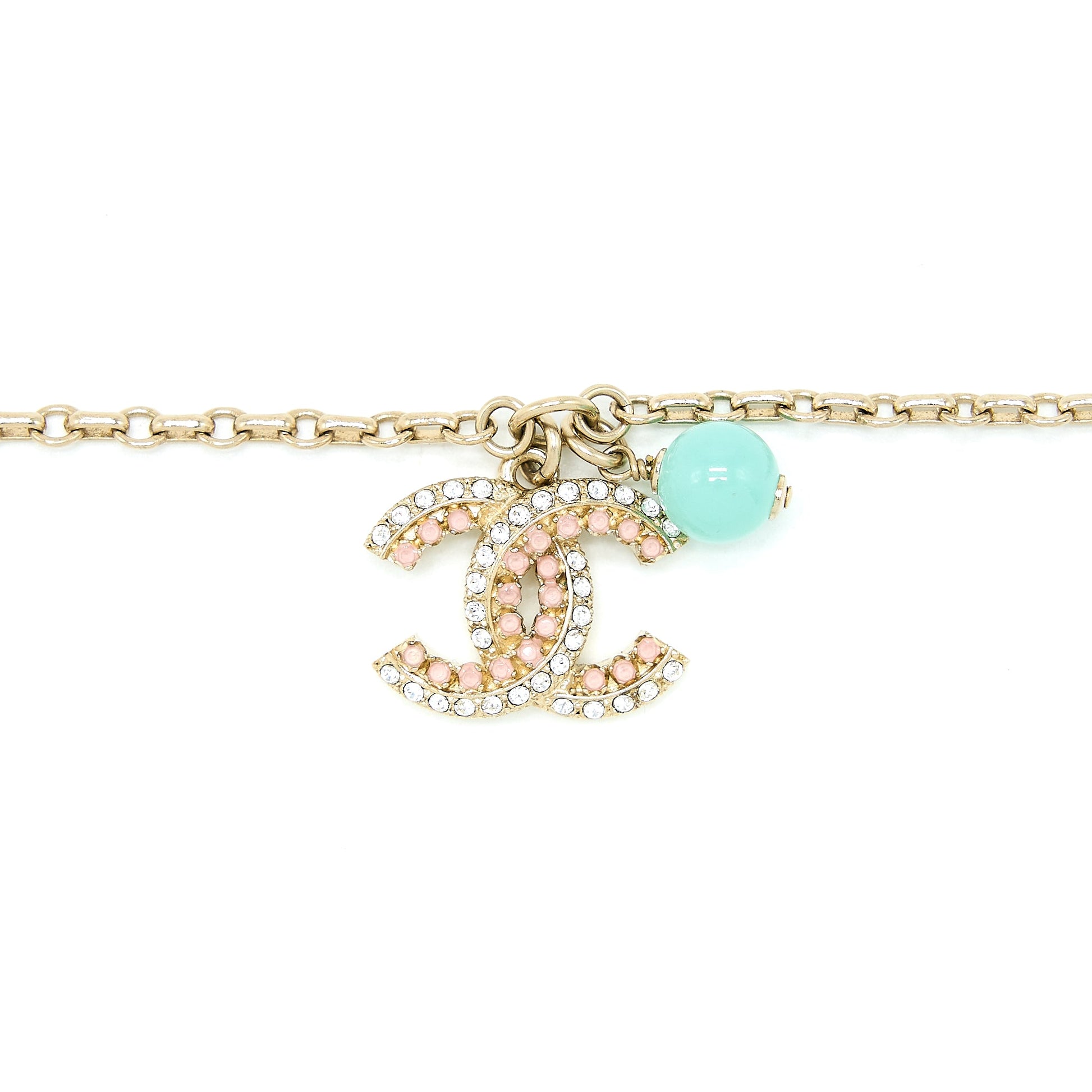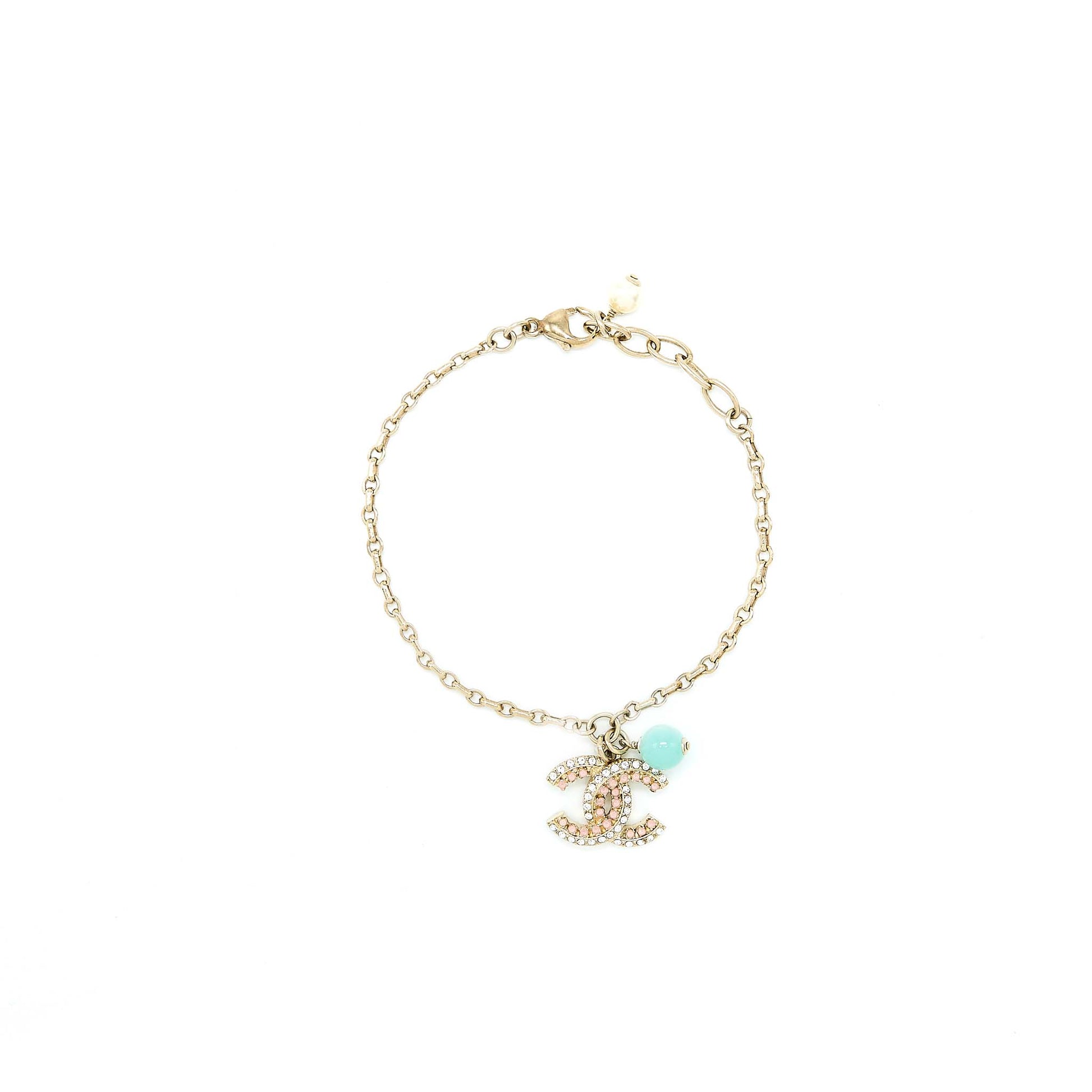 Chanel 19S Crystal CC Logo Bracelet Pearl/Stud Light Gold Tone