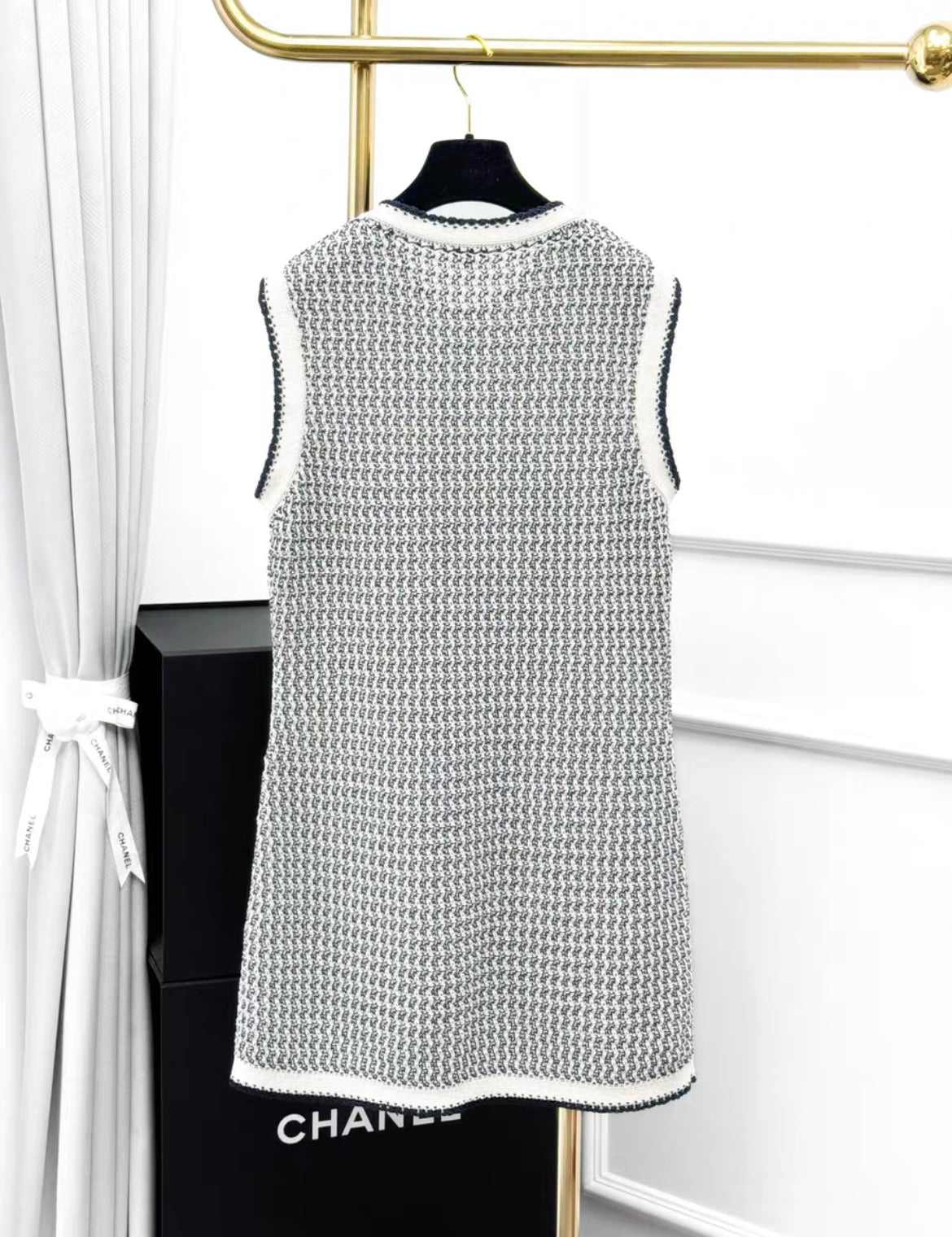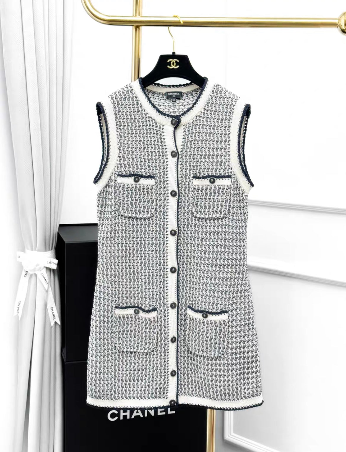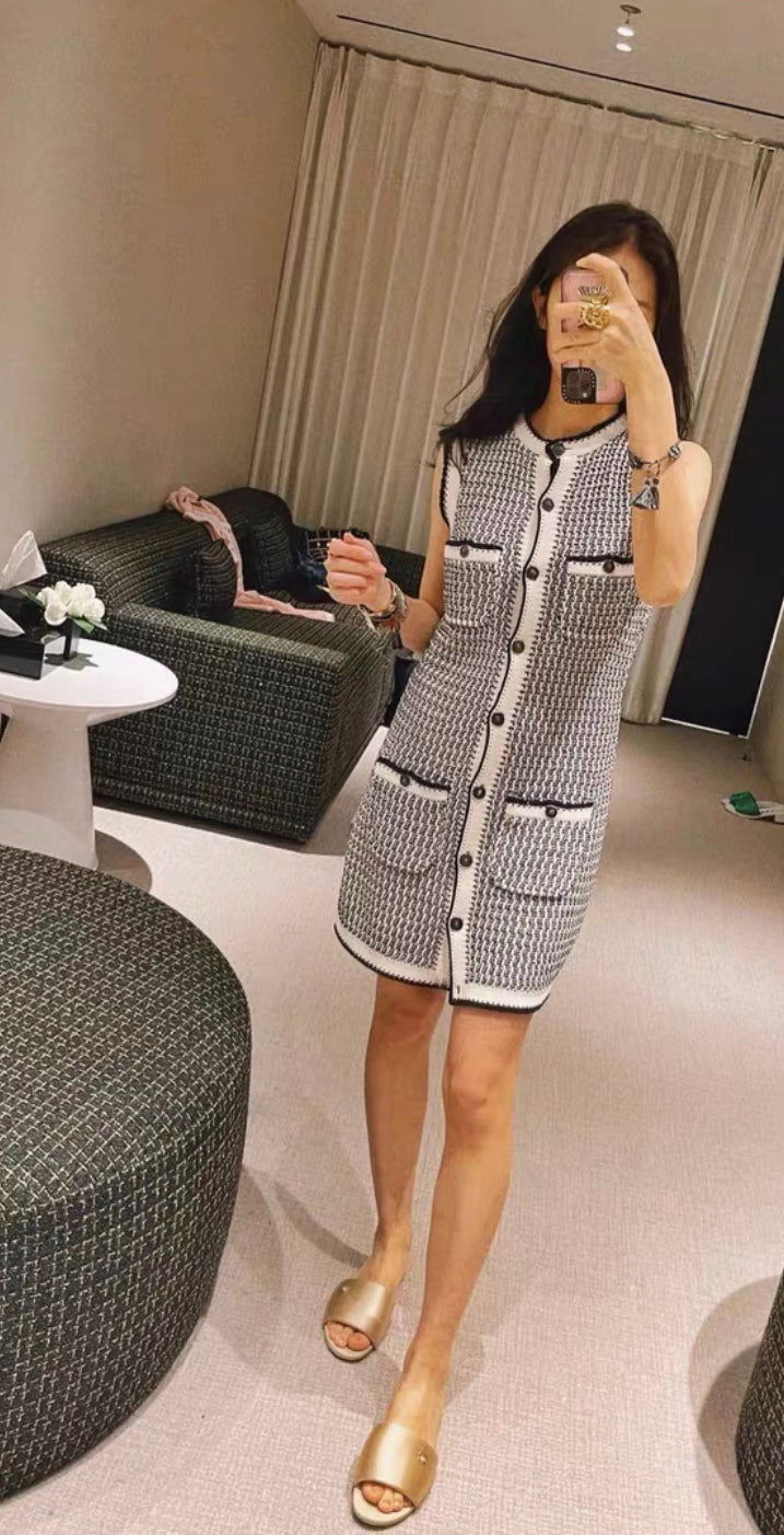 Chanel 2022 pre-spring summer collection black and white four-pocket tweed dress size 40