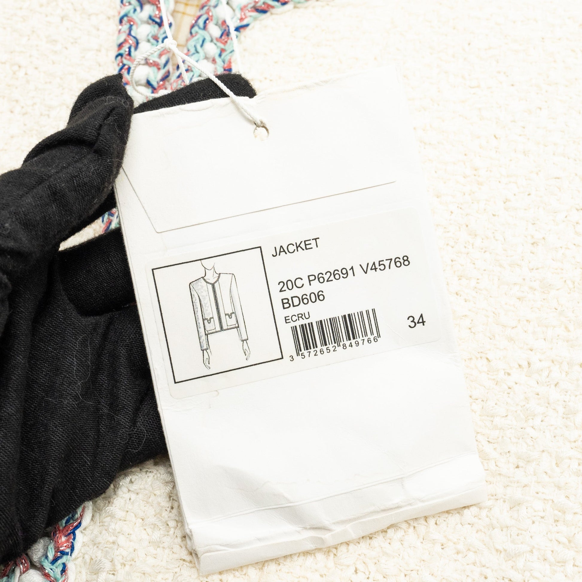Chanel 20C Size 34 Tweed Jacket Cotton/Polyamide Ecru/Multicolour