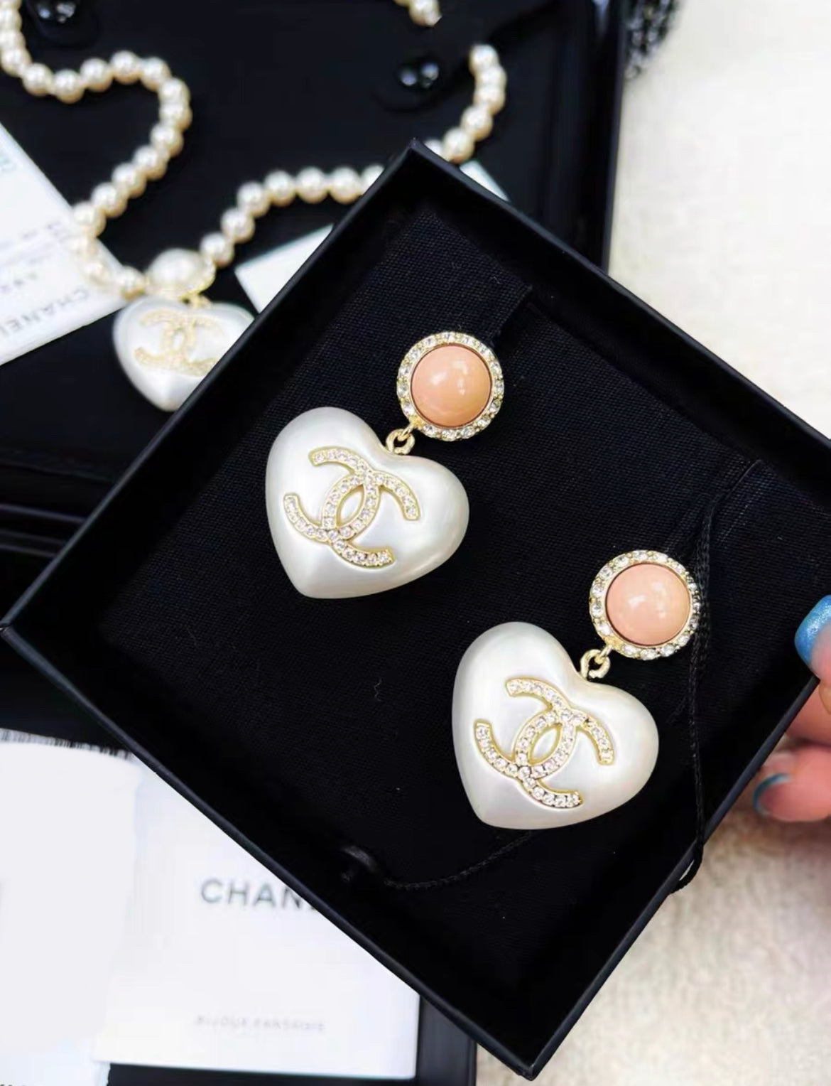 These CC Heart earrings from the 2021 Cruise Collection by Chanel will add a touch of elegance to any outfit. The pink and Pearl colors are perfect for any occasion. Make a statement with these stylish and sophisticated earrings.