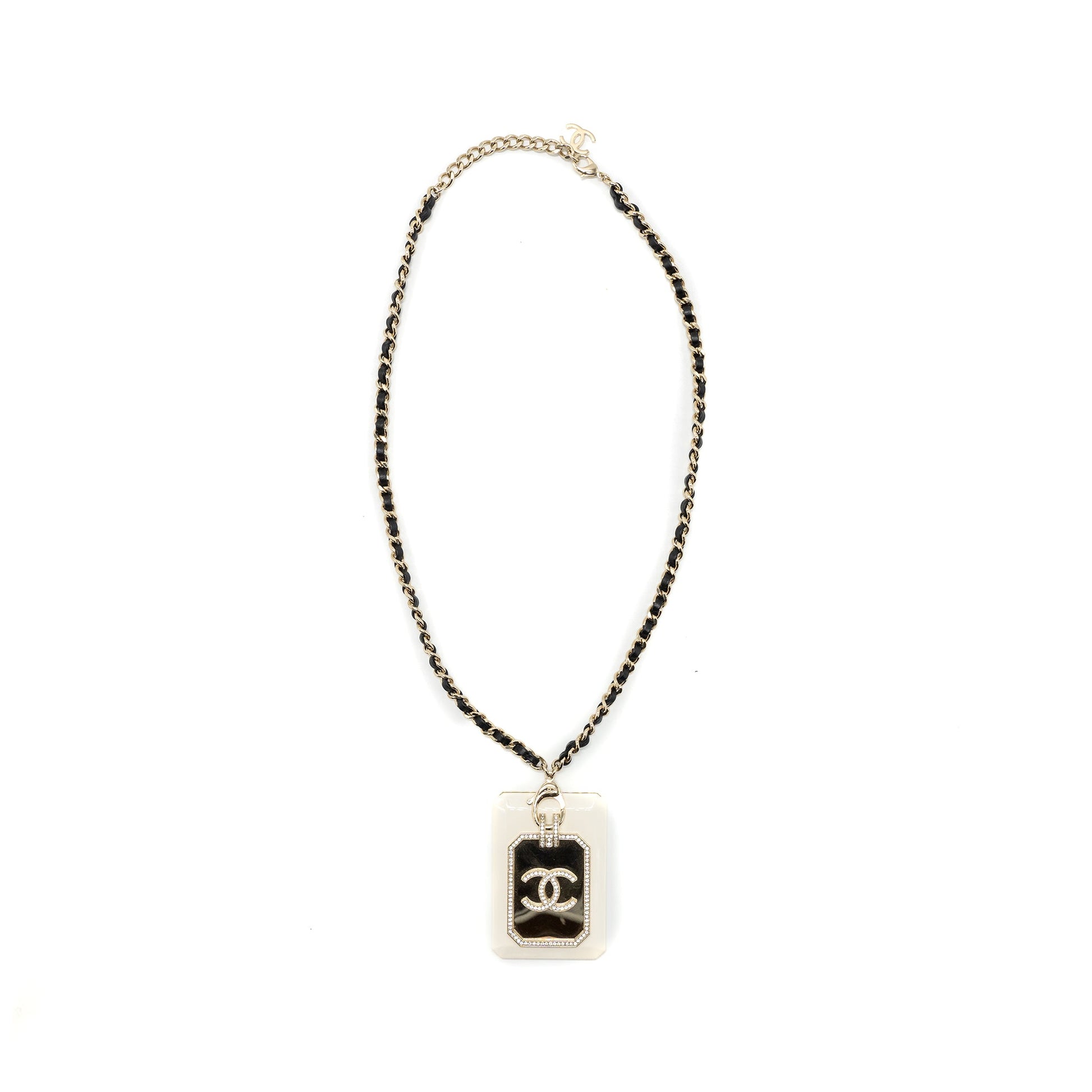 Chanel 21A Long Necklace Card Holder Leather Chain White L